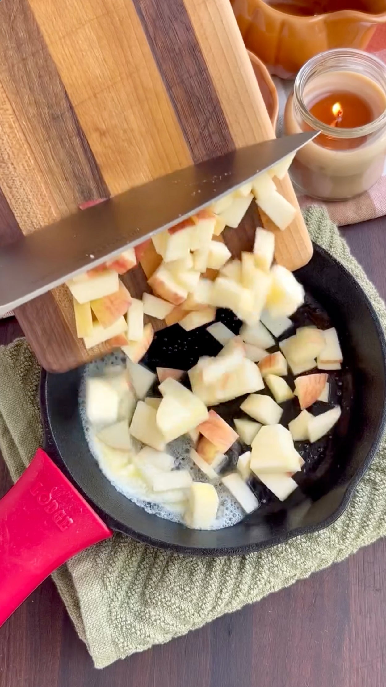 - PREPARE the Sautéed Apple Topping: In a small skillet, melt butter over medium heat.
