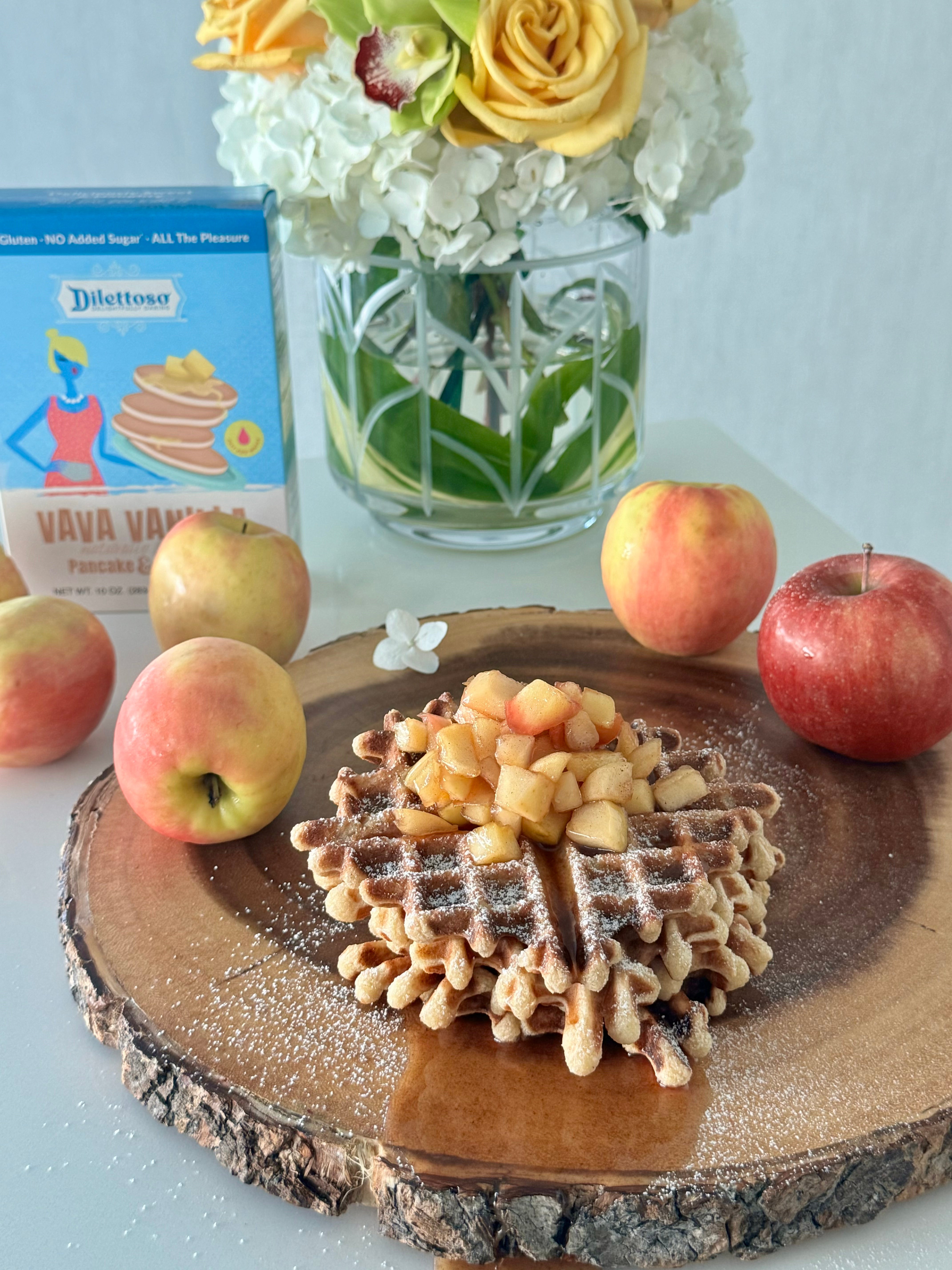 Indulge in the comforting flavors of Apple Pie Waffles, featuring a luscious apple-cinnamon sauce poured over fluffy Dilettoso waffles. Top it off with a dollop of Greek yogurt and a sprinkle of cinnamon-infused powdered sugar for the ultimate breakfast treat (or dessert!).
