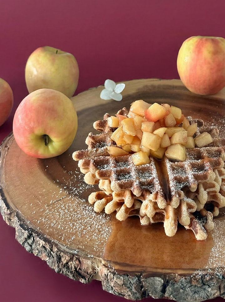 Celebrate National Waffle Day with Apple Pie Waffles, featuring a luscious apple topping (made with Langer's Apple Butter) poured over fluffy Dilettoso Vava Vanilla waffles. Top it off with a dollop of Greek yogurt and a sprinkle of cinnamon-infused powdered sugar for the ultimate treat.
