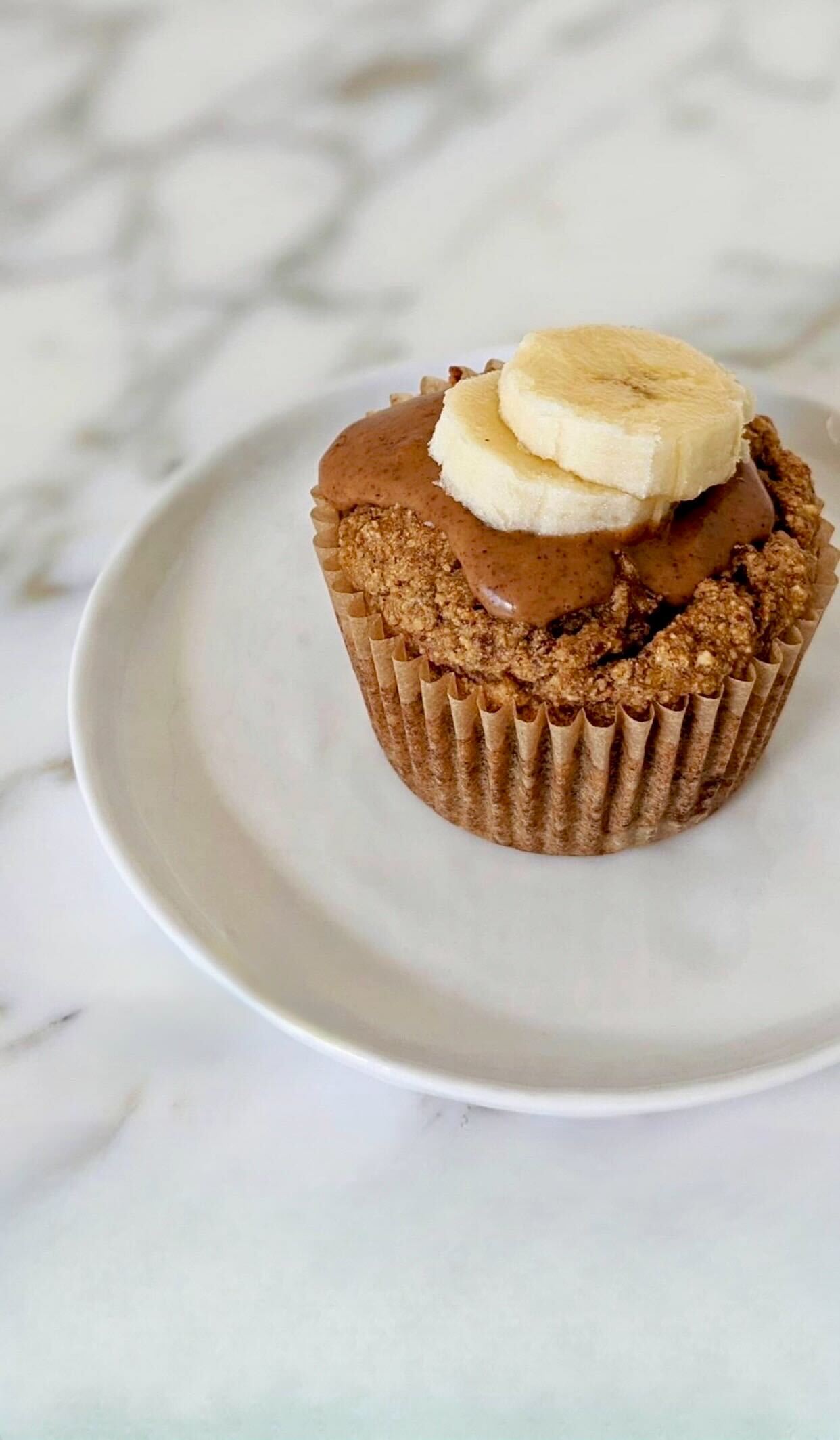 - COOL the muffins in the tin, on a wire rack, for at least 15 minutes before removing from the tin. TOP each muffin with a slice of fresh banana and a drizzle of creamy almond butter.