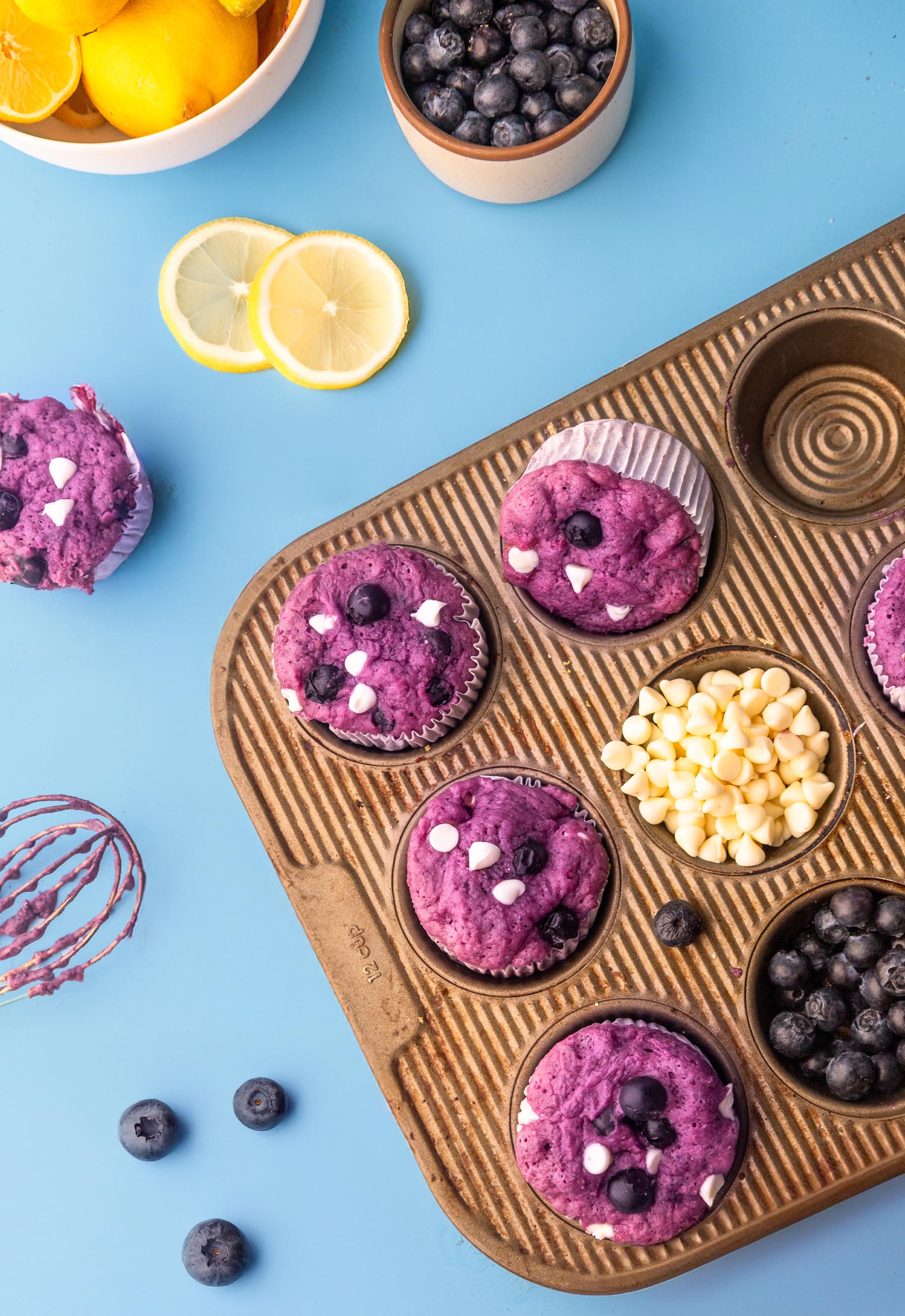 - COMBINE wet and dry ingredients, then gently fold in frozen blueberries.