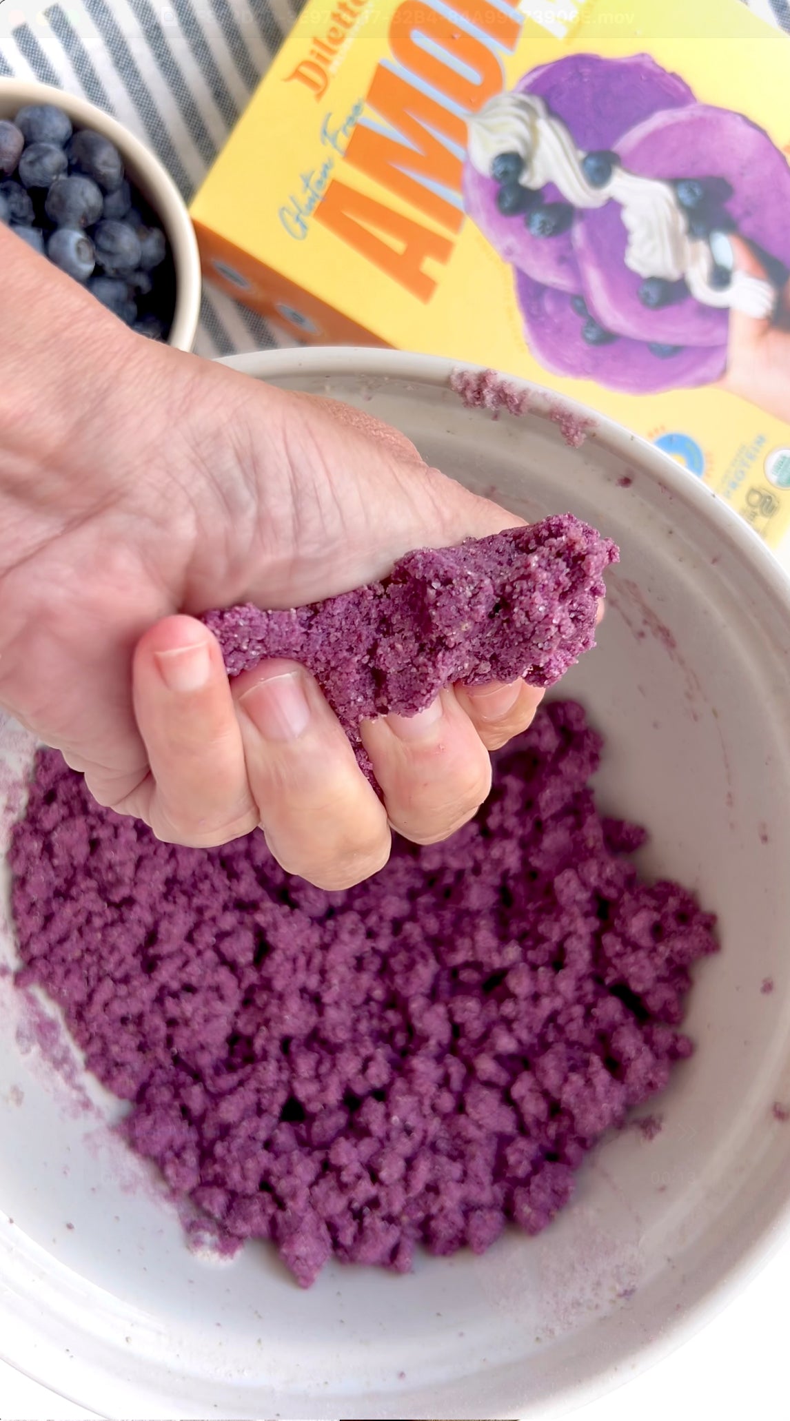 - MIX in Bella Berry mix and a splash of milk until a dough forms.