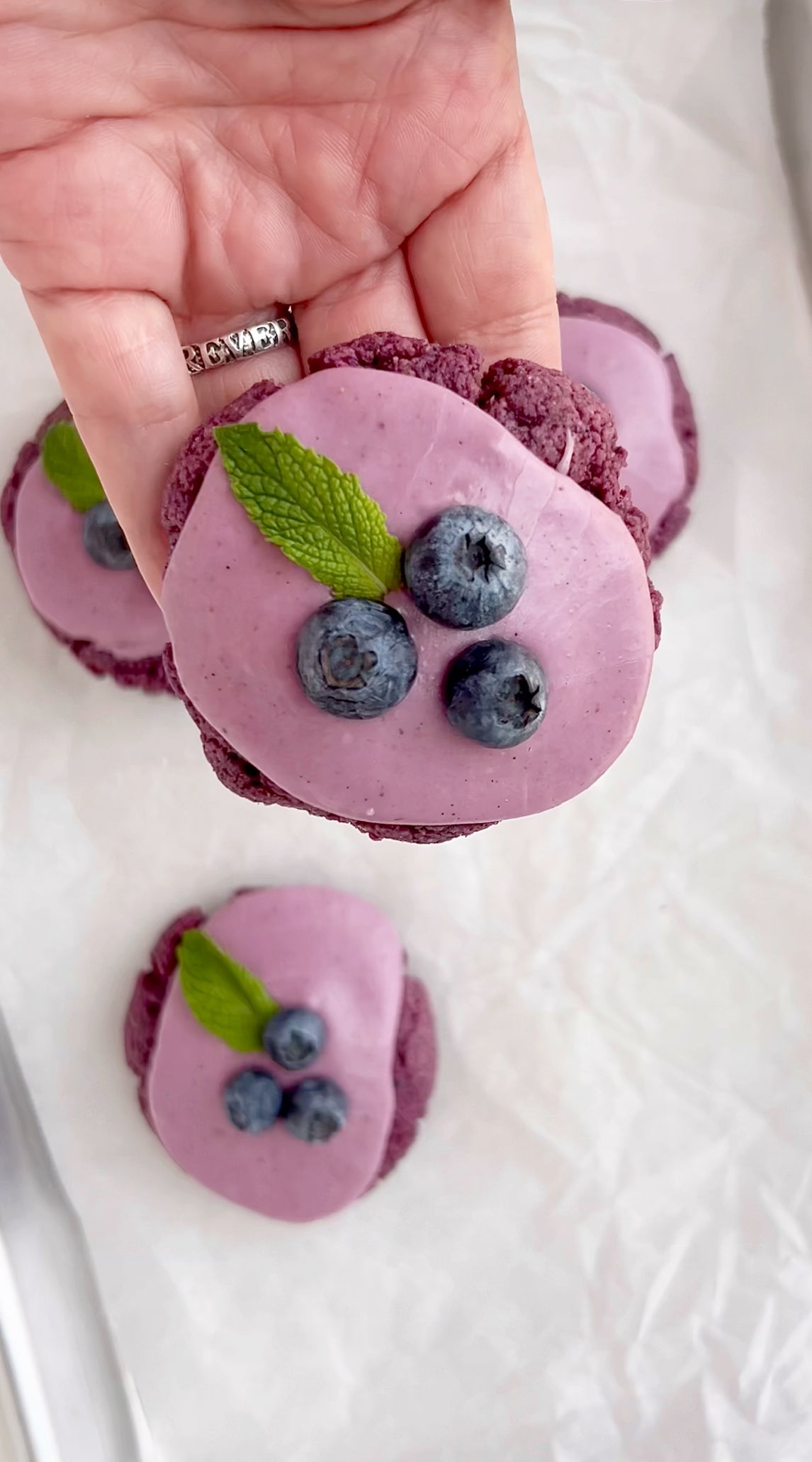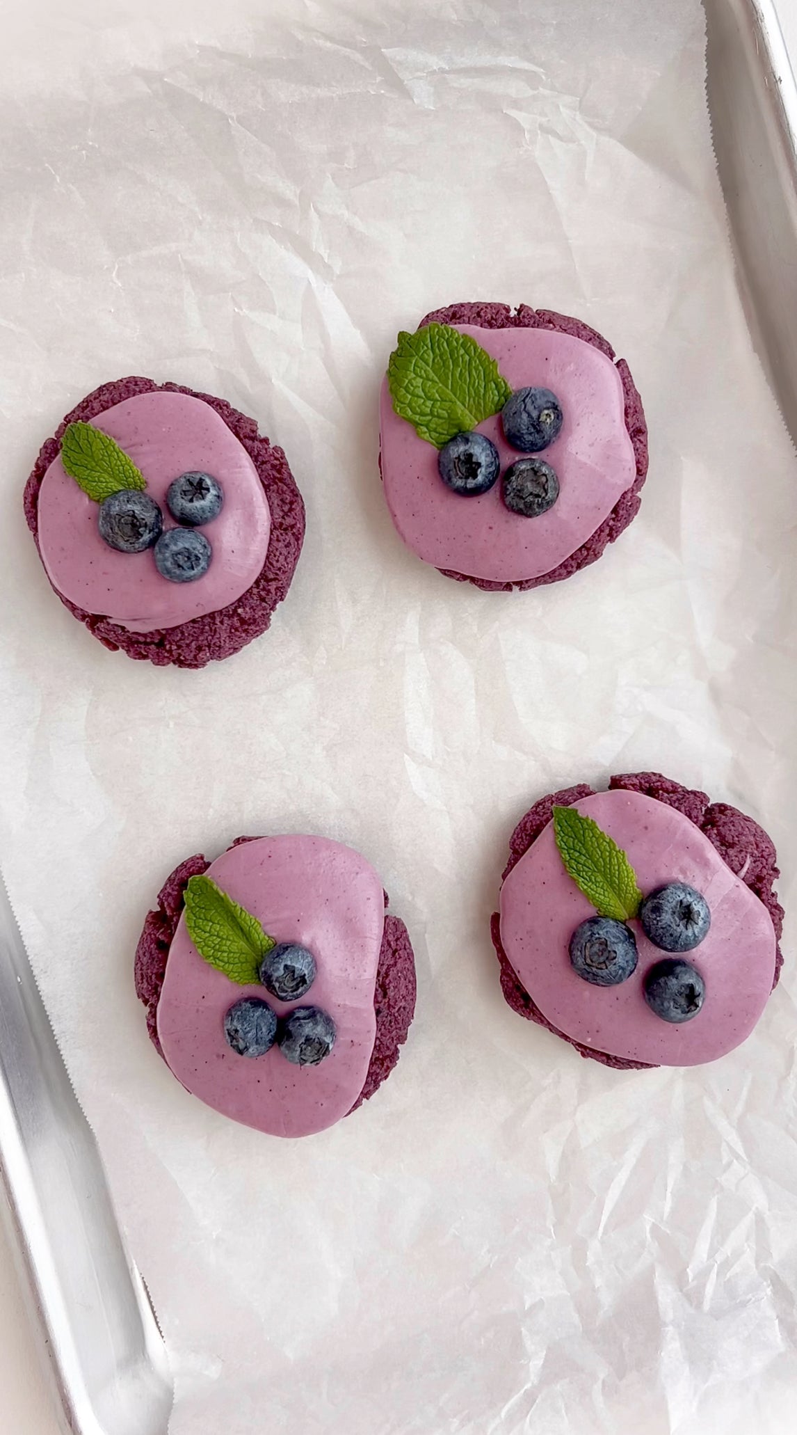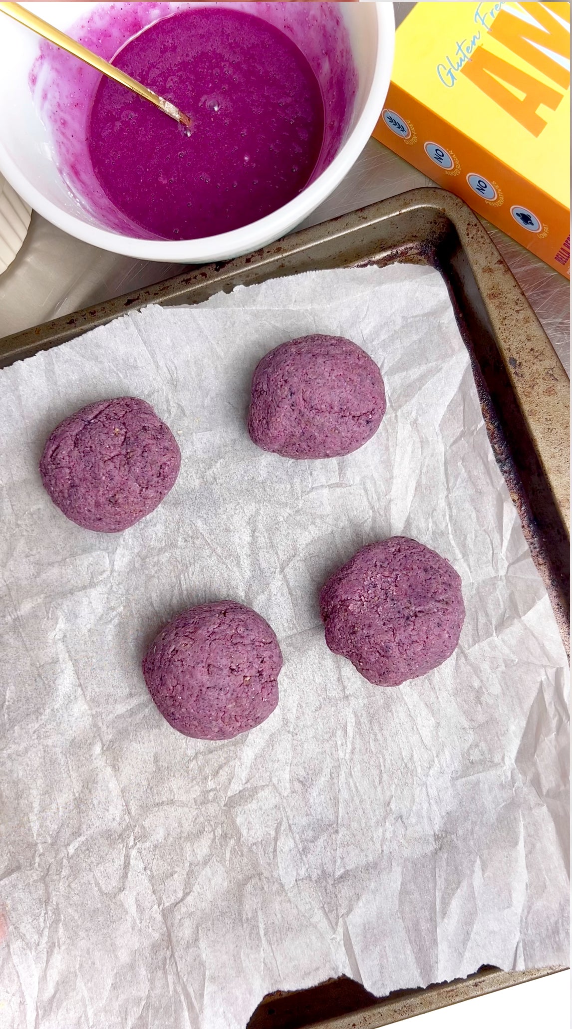 - FOLD in blueberries if using. Scoop onto parchment-lined tray.