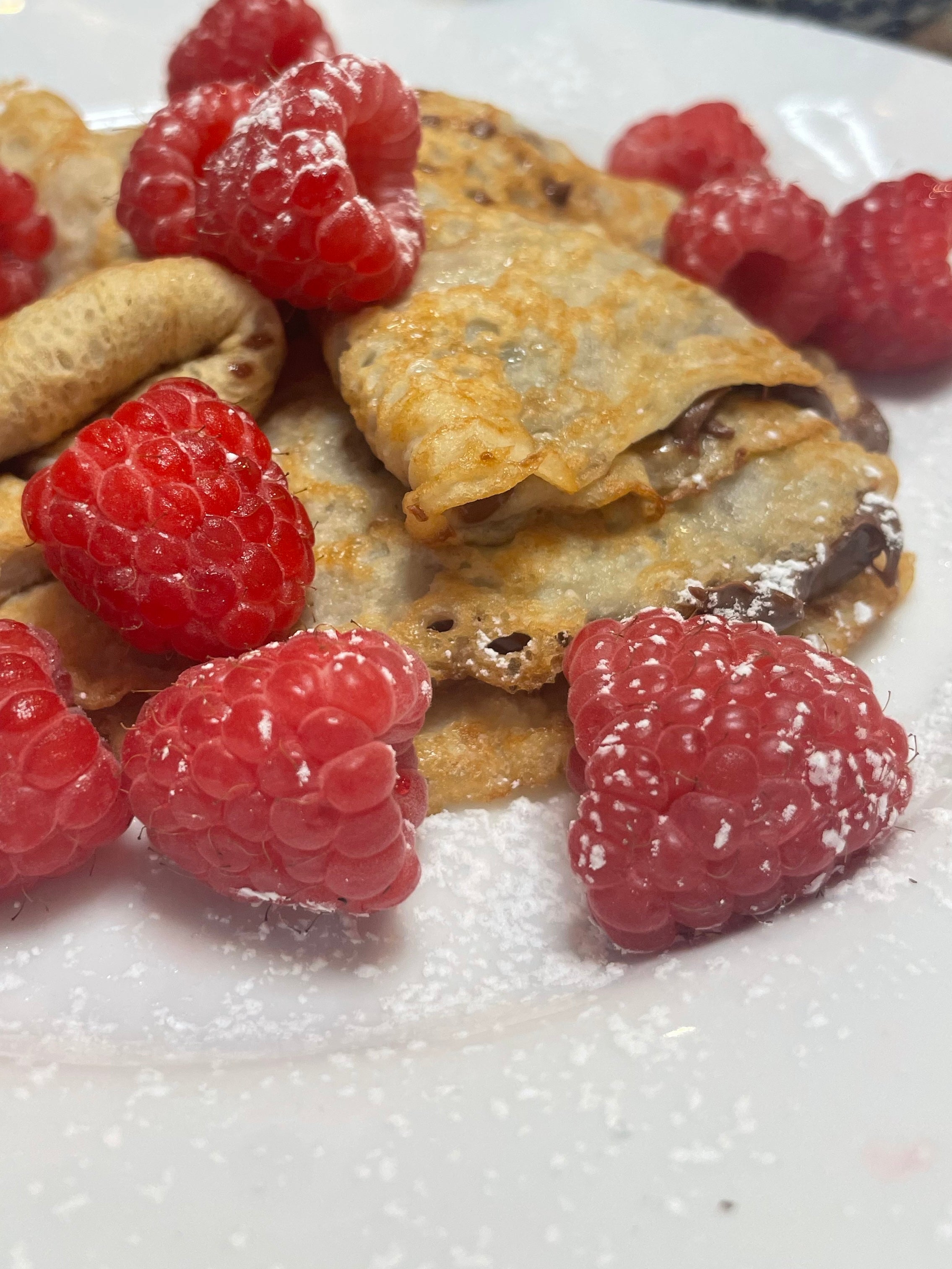 - FILL UP your crêpes with chocolate spread, top with a dust of powdered sugar, and fresh berries.