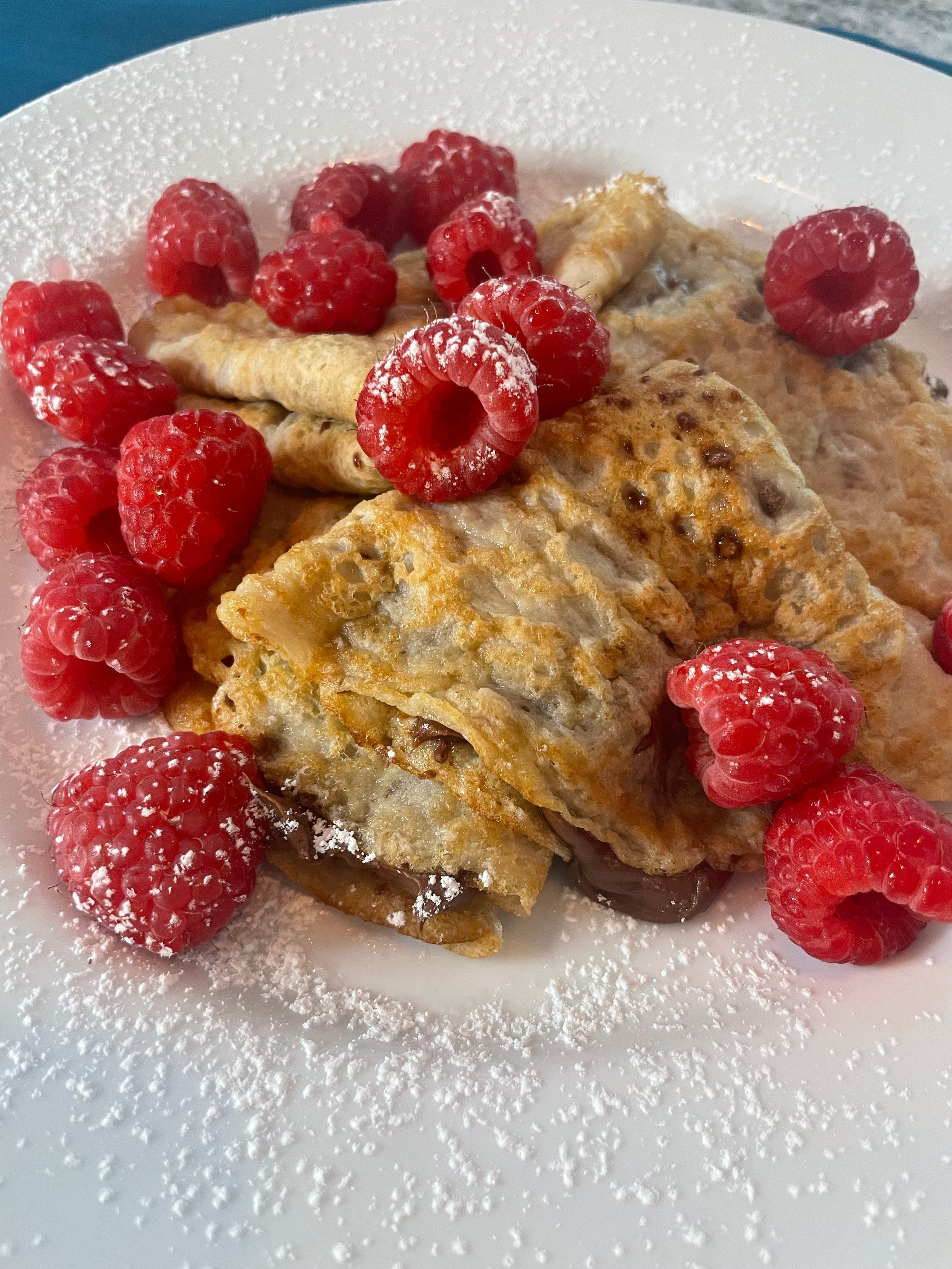 These thinly layered crepes are stuffed with a generous amount of smooth Nutella, infusing each bite with a rich, chocolatey flavor that will have you swooning. Topped with juicy, tart raspberries that balance out the sweetness, these crepes are a culinary marvel that will leave you yearning for more.