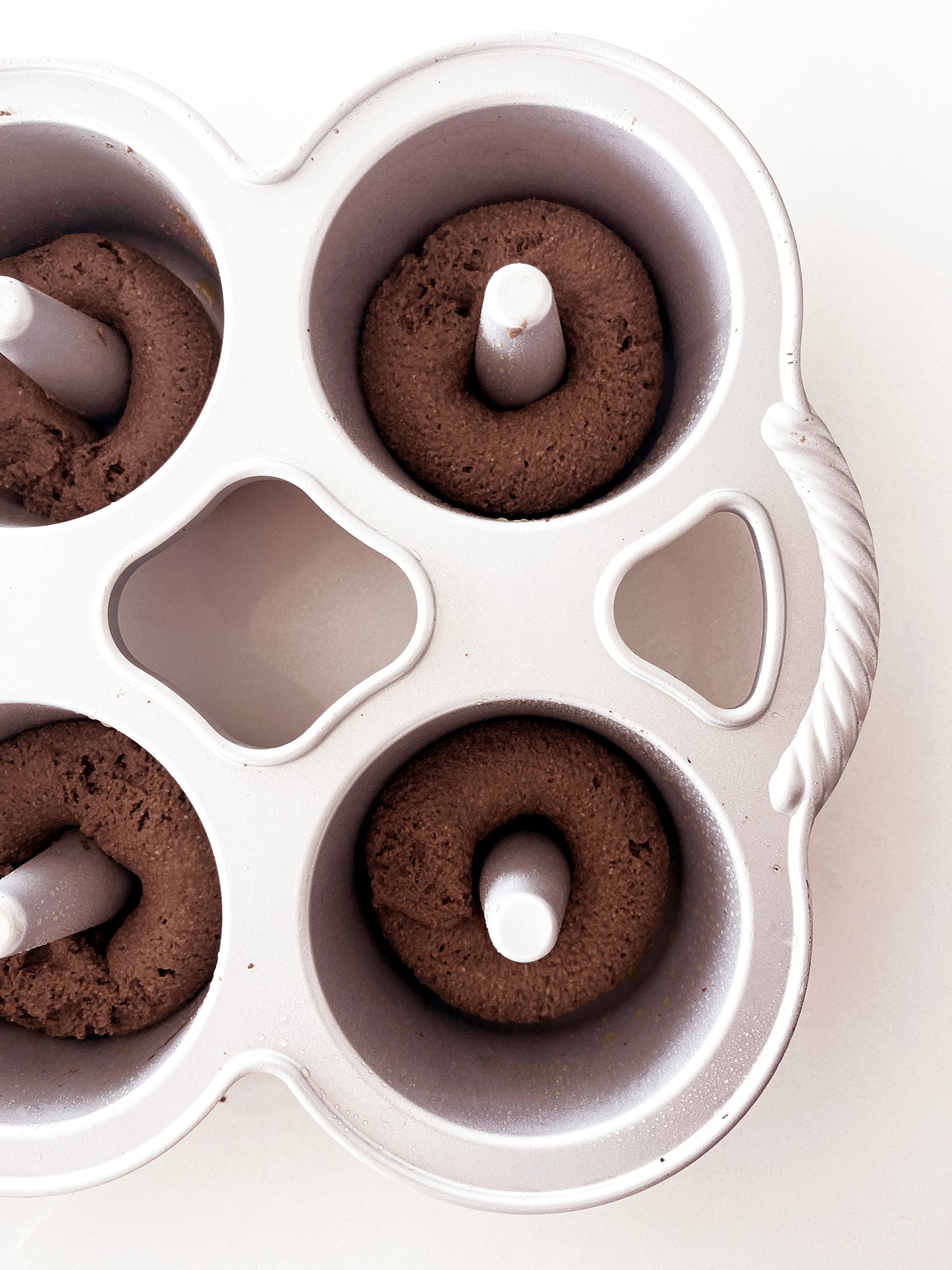 - PREHEAT the oven to 375 degrees. Grease a non-stick donut pan or use a silicone one.