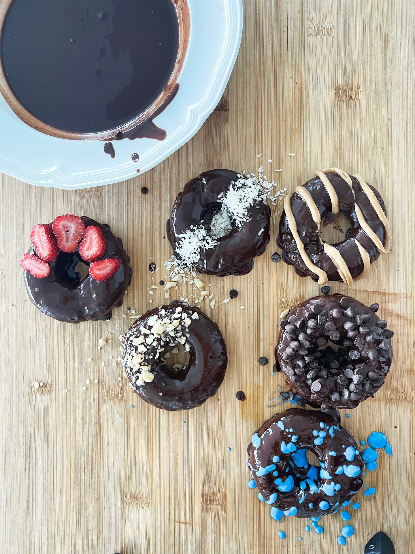 - DIP the surface of each donut in the chocolate glaze and top with some sprinkles, if desired. ALLOW the glaze to harden at room temperature or in the fridge, before enjoying!