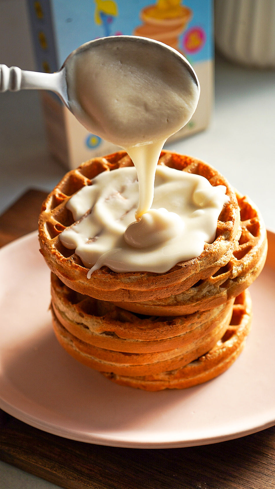 - Mix the ingredients for the glaze, drizzle over waffles.