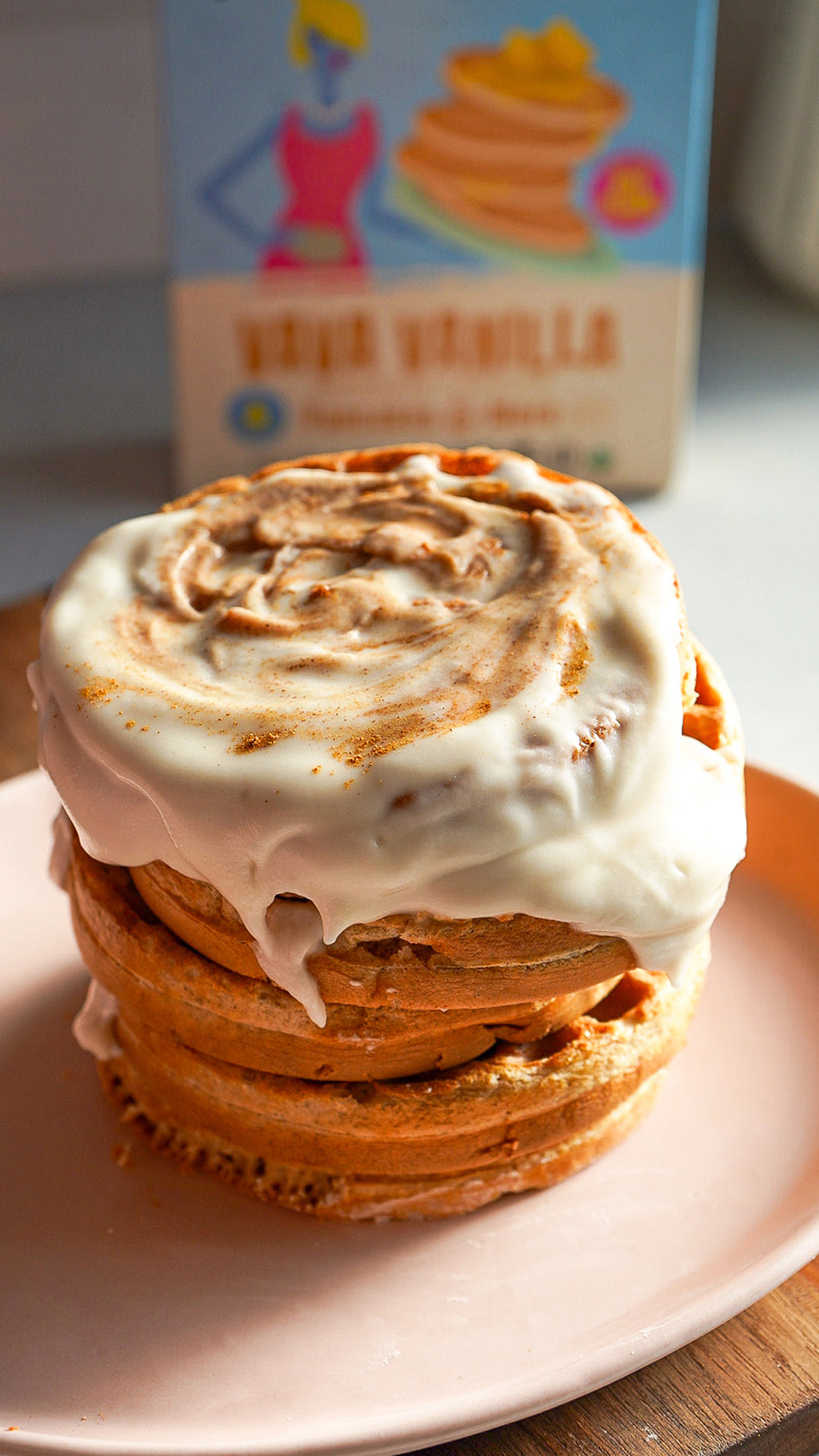 These waffles will power up your morning and keep you satisfied for hours. A flavor-packed dream swirling with vanilla vibes and a kick of cinnamon sass. Made with Dilettoso Vava Vanilla Pancake Mix and a touch of creamy Greek yogurt, they’re fluffy, filling, and downright fabulous—especially when topped with a luscious vanilla glaze.