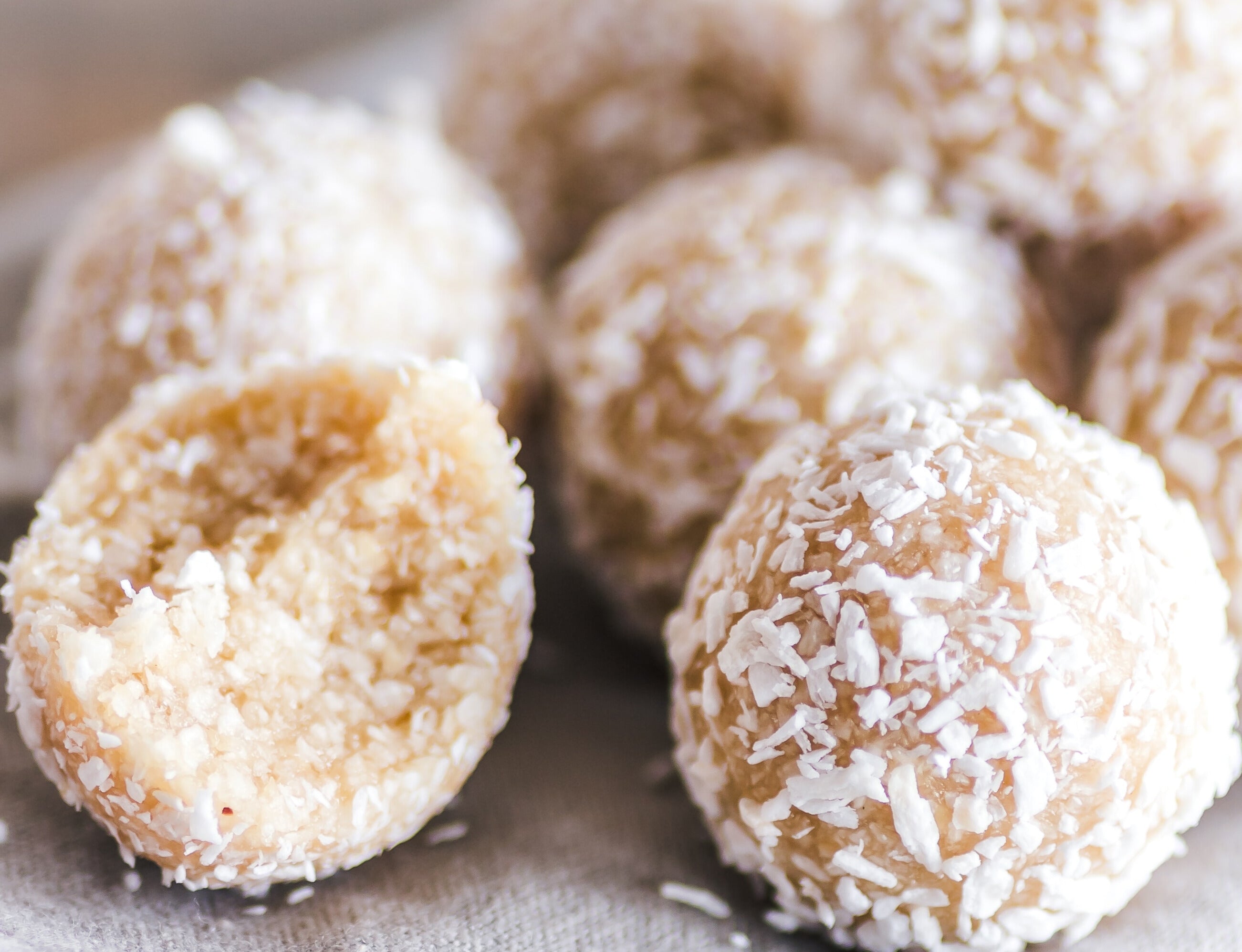 Or, you can freeze the coconut balls in zip lock bags and thaw for 3 hours at room temperature before eating.
