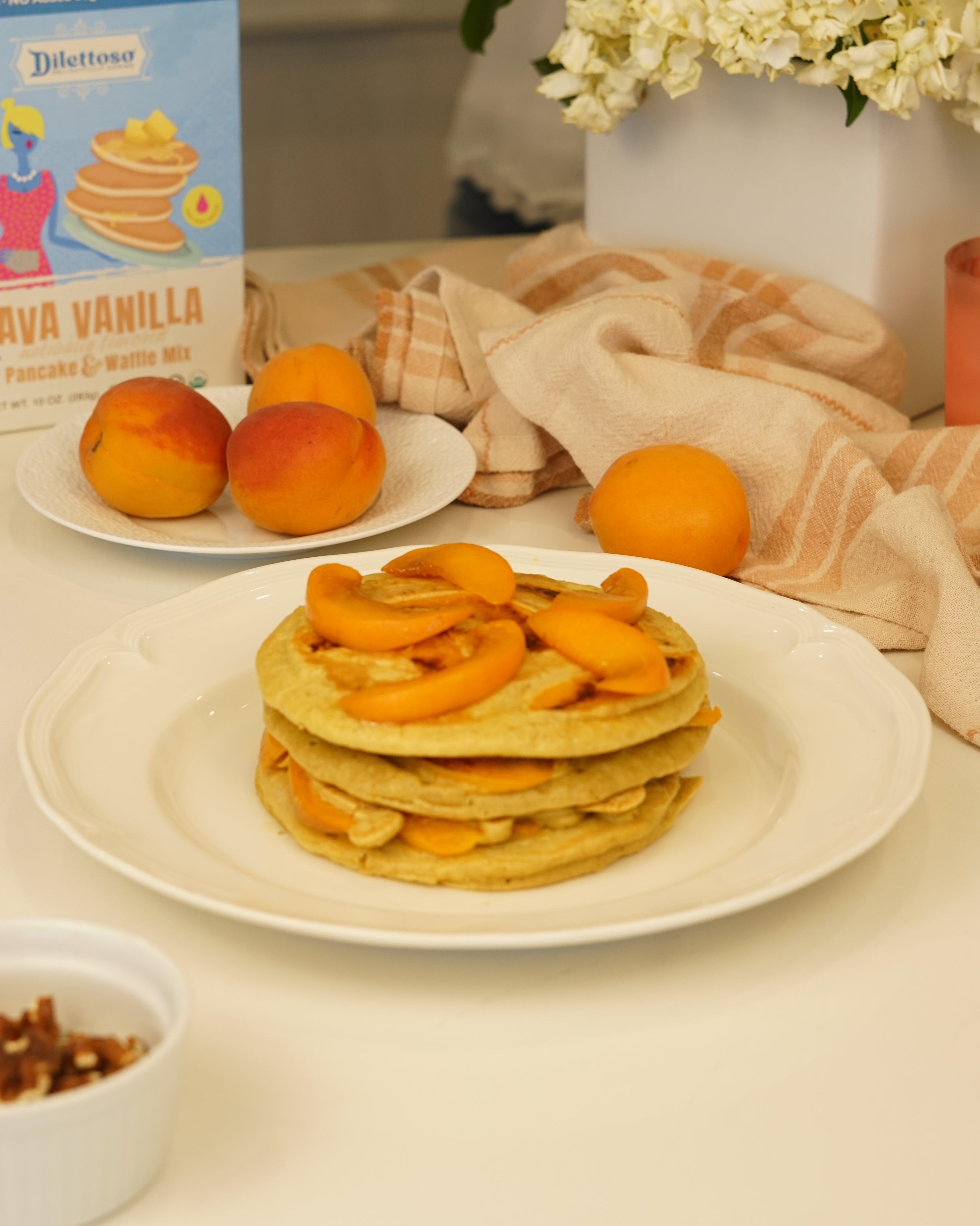 These pancakes not only taste amazing but also give your skin a healthy, radiant glow. Made with juicy apricots and topped with a drizzle of honey and a sprinkle of pecans for the perfect breakfast treat. It’s a great way to start your morning with a glow that shines from the inside out.