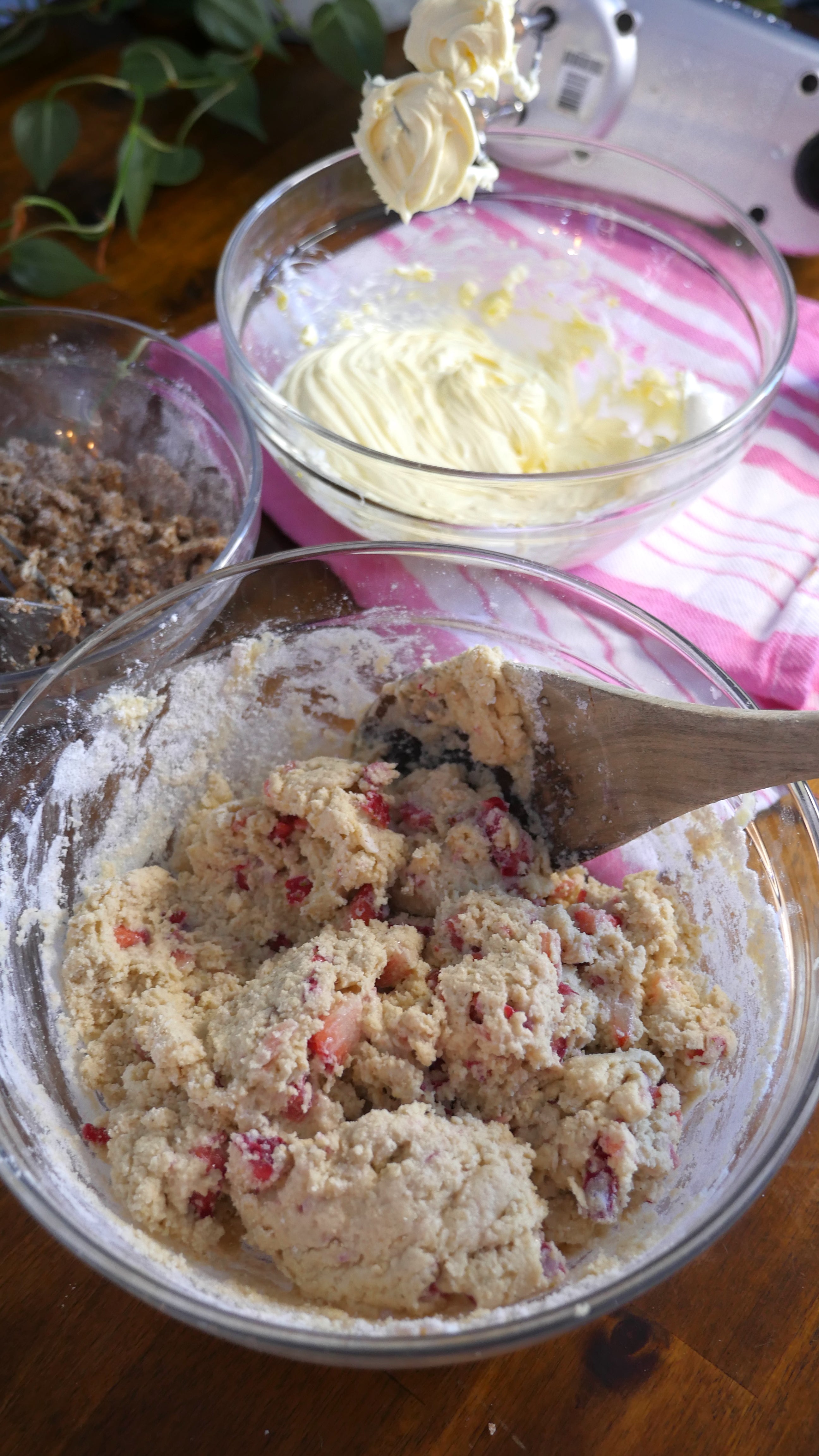 - FOLD in the strawberries with a wooden spoon or rubber spatula.