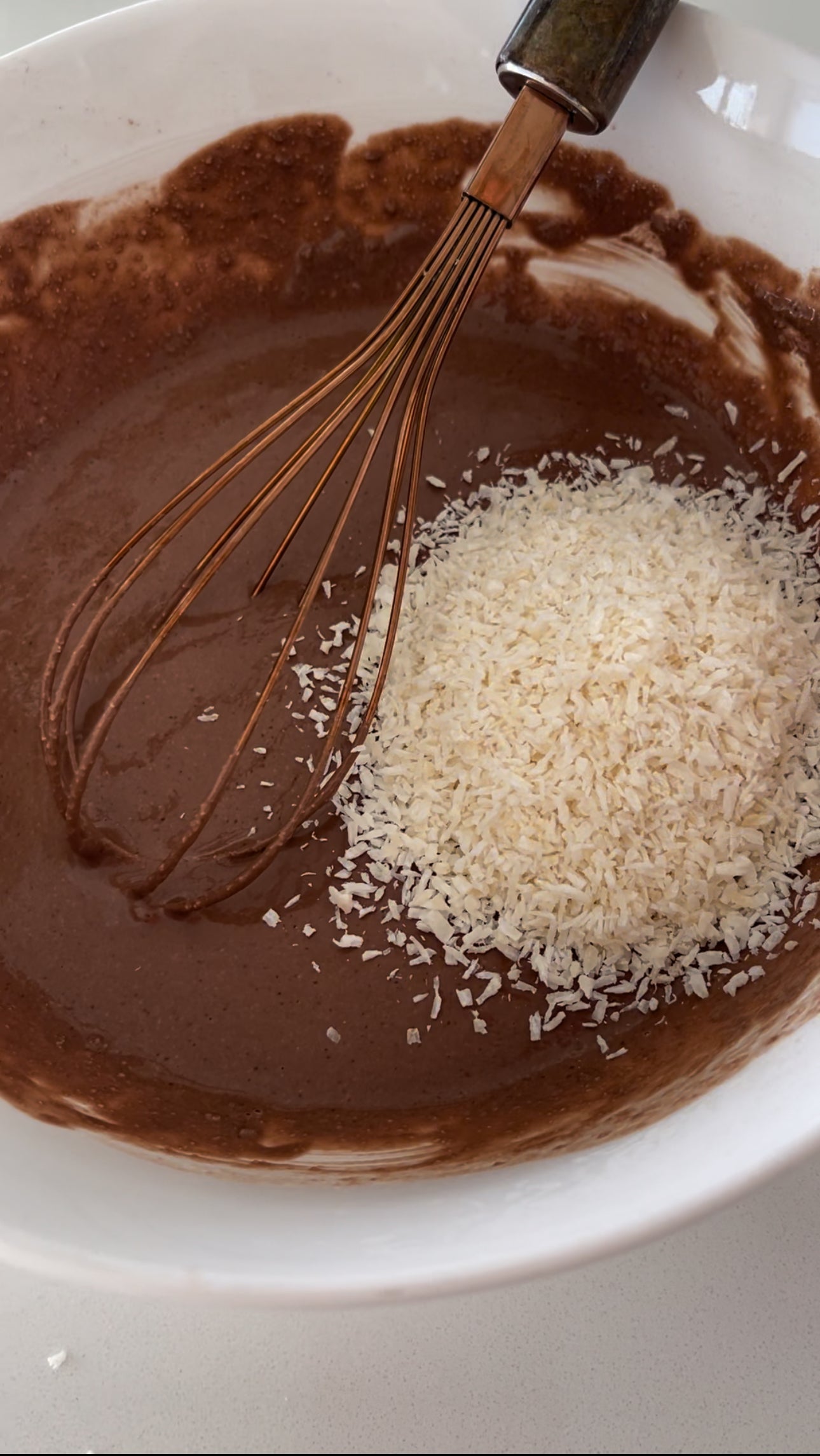 - USE a mixing bowl to combine coconut milk, Choc-o-lotta Dilettoso Mix, oil of choice, shredded coconut, and chocolate chips.