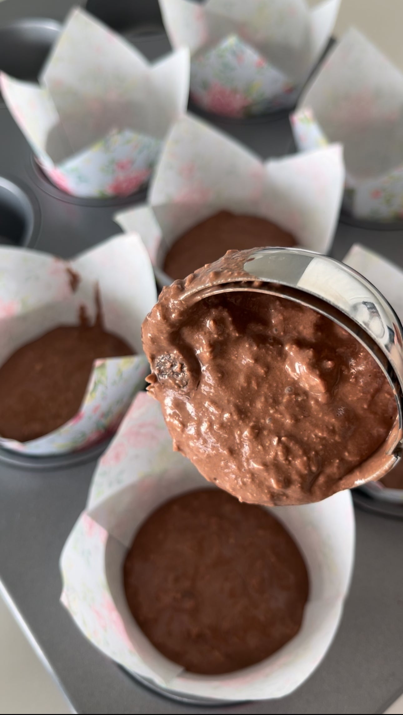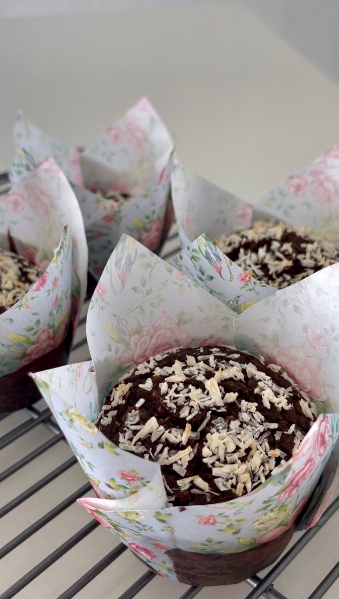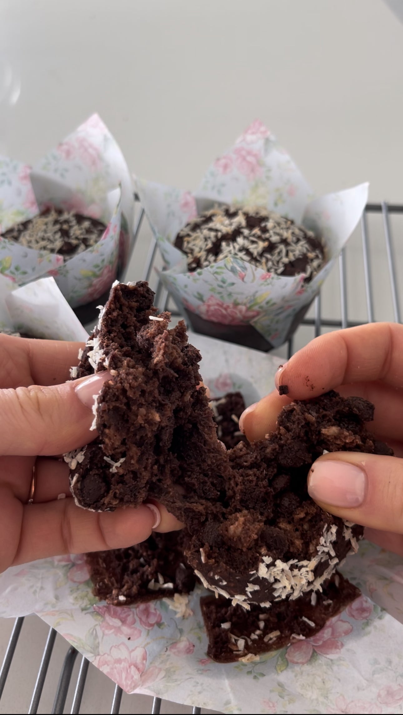 - DISTRIBUTE the batter in the prepared muffin tin, until each cup is 3/4 full. Top with more chocolate chips and shredded coconut.