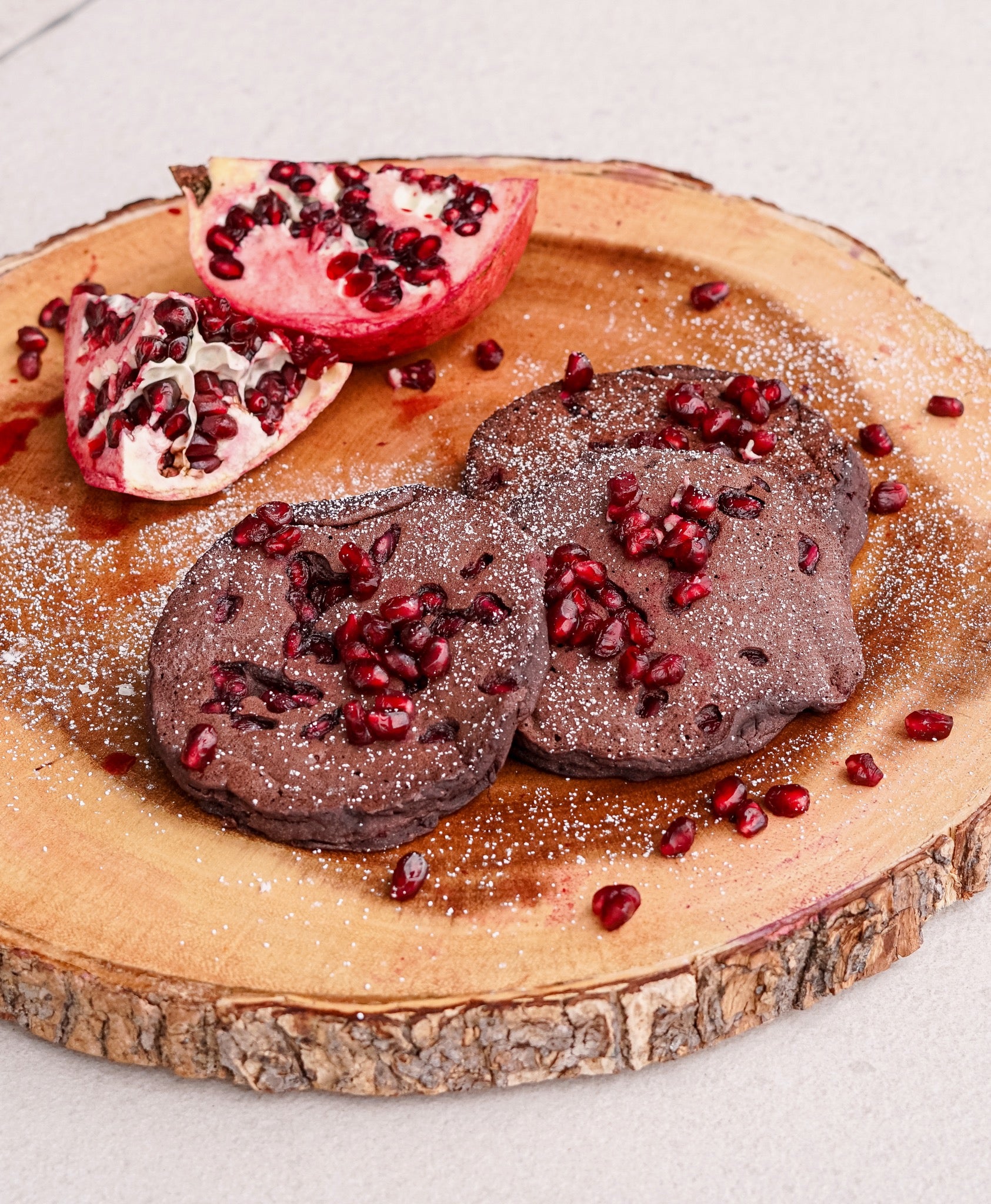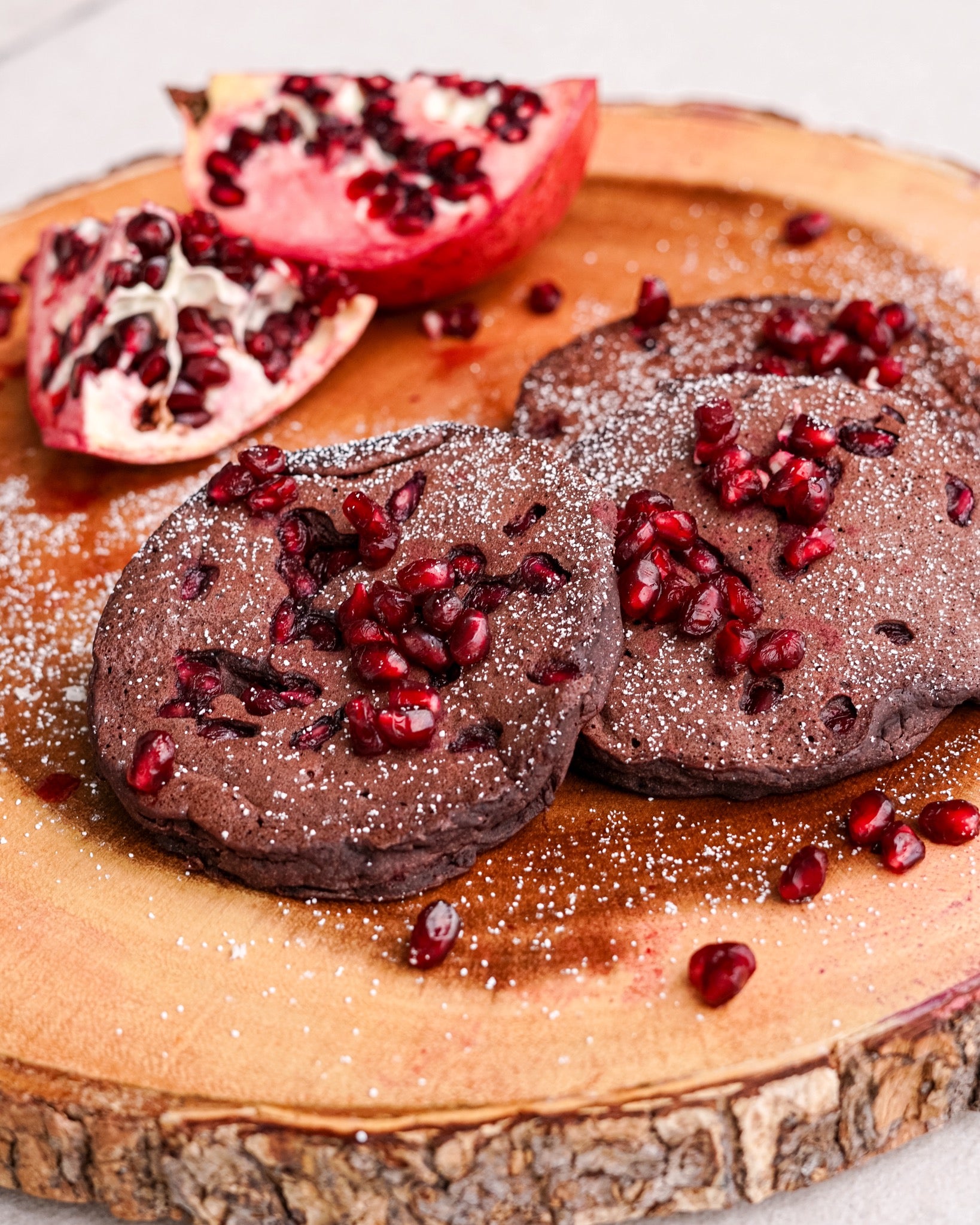 - TOP your elderberry pomegranate protein pancakes with more fresh pomegranate gems, and a dust of powdered sugar.