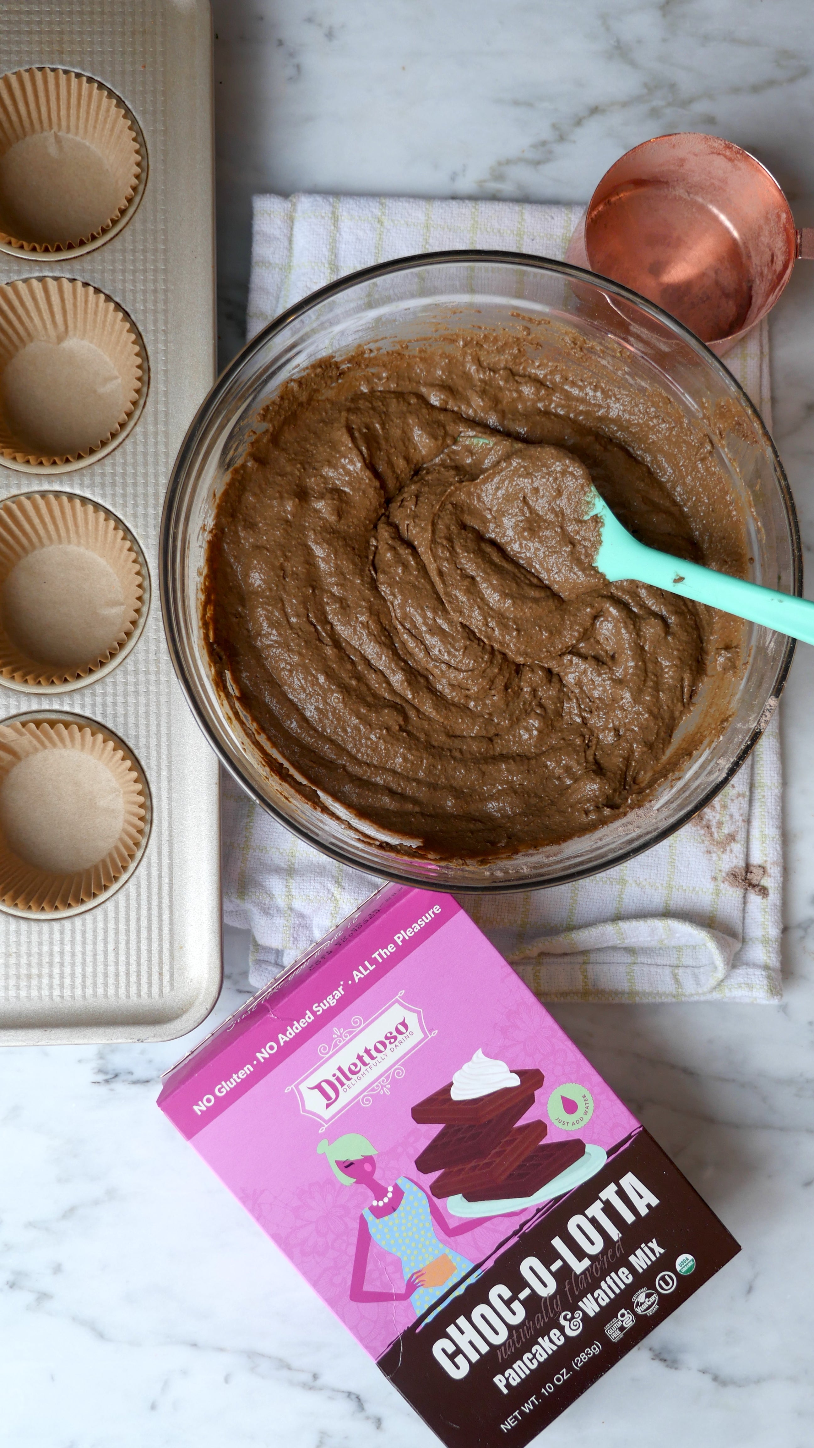 These healthy muffins are veggie-packed, yet they taste like fudgy chocolate muffins. They are easy to make and gluten-free, thanks to the Dilettoso Oat based baking mix. They are packed with carrot, zucchini and spinach as the star veggies. However, the Dilettoso Choc-o-lotta mix will hide the veggie colors and mask their flavor, with its rich cacao note. You can totally trick the whole family with this delicious recipe; they will indulge and get that extra dose of veggies. A win-win! These healthy and nutritious muffins also freeze well so you can make them ahead of time and defrost them for a quick breakfast or snack.