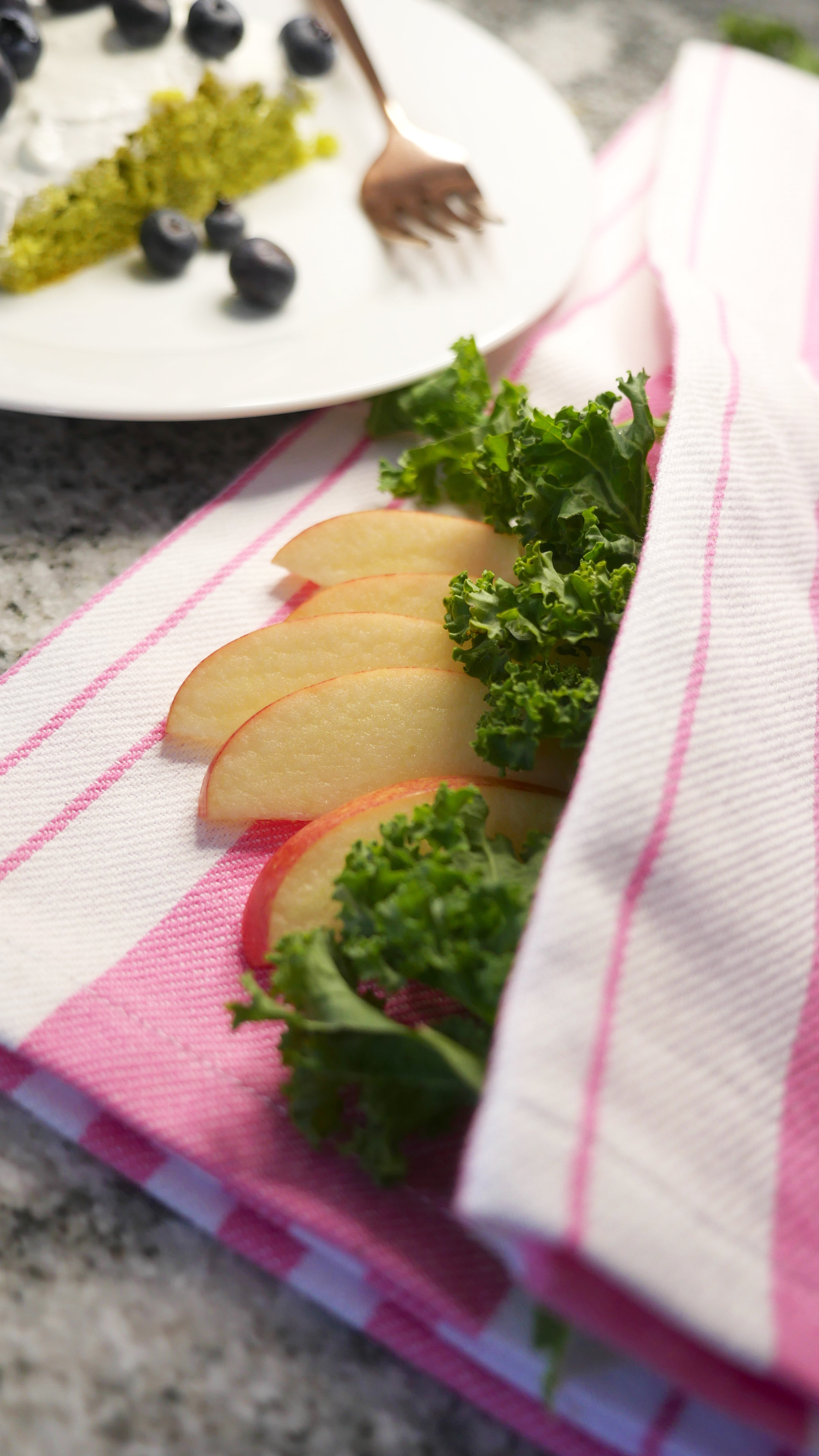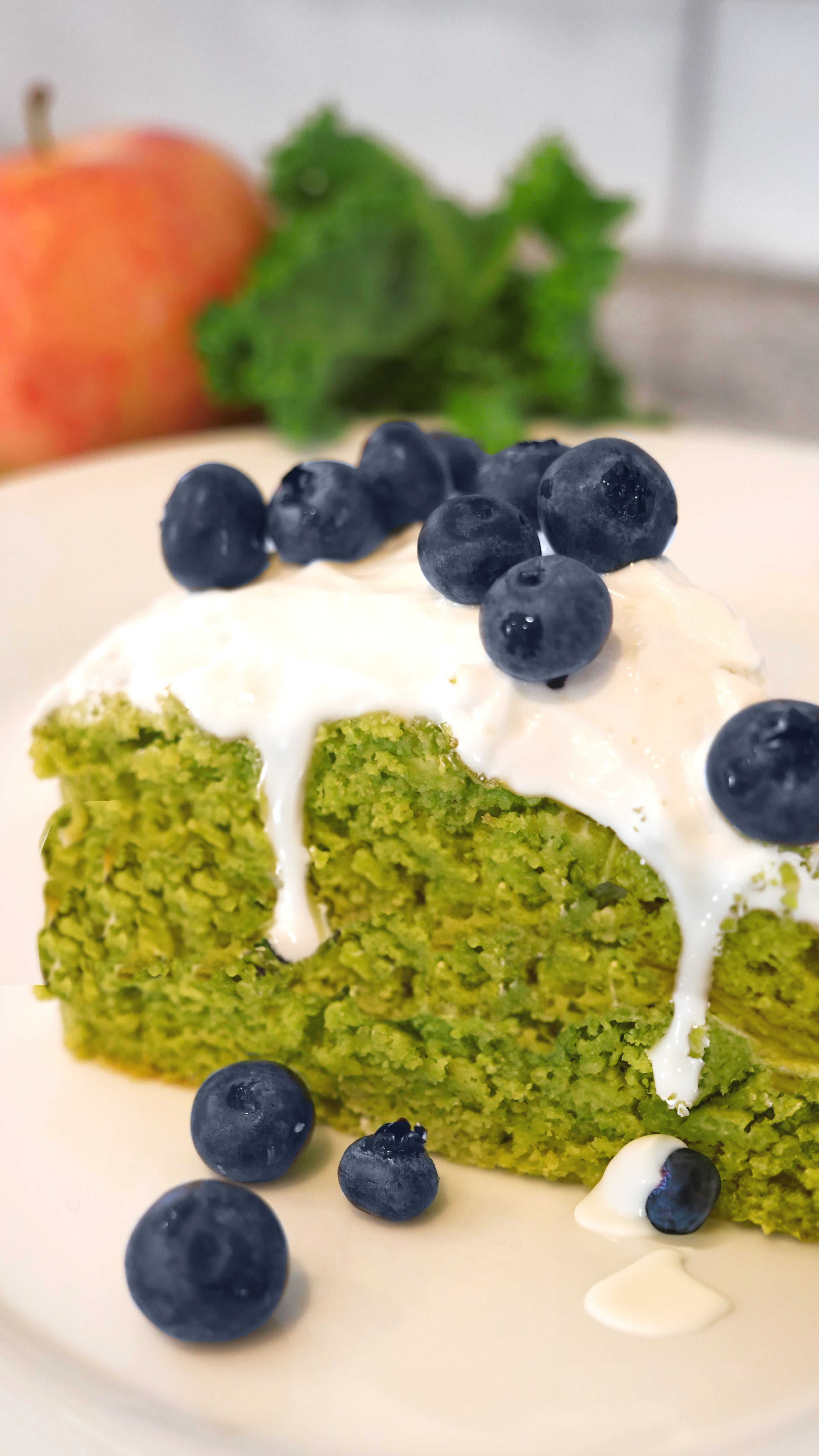 Can you spot the veggies in this dessert? This tasty little cake has a fun way of sneaking some greens into your sweet routine. Made from a mixture of fresh kale and juicy apples, it packs a nutritional punch. Then top it with a smooth yogurt based frosting for a creamy, dreamy finish.