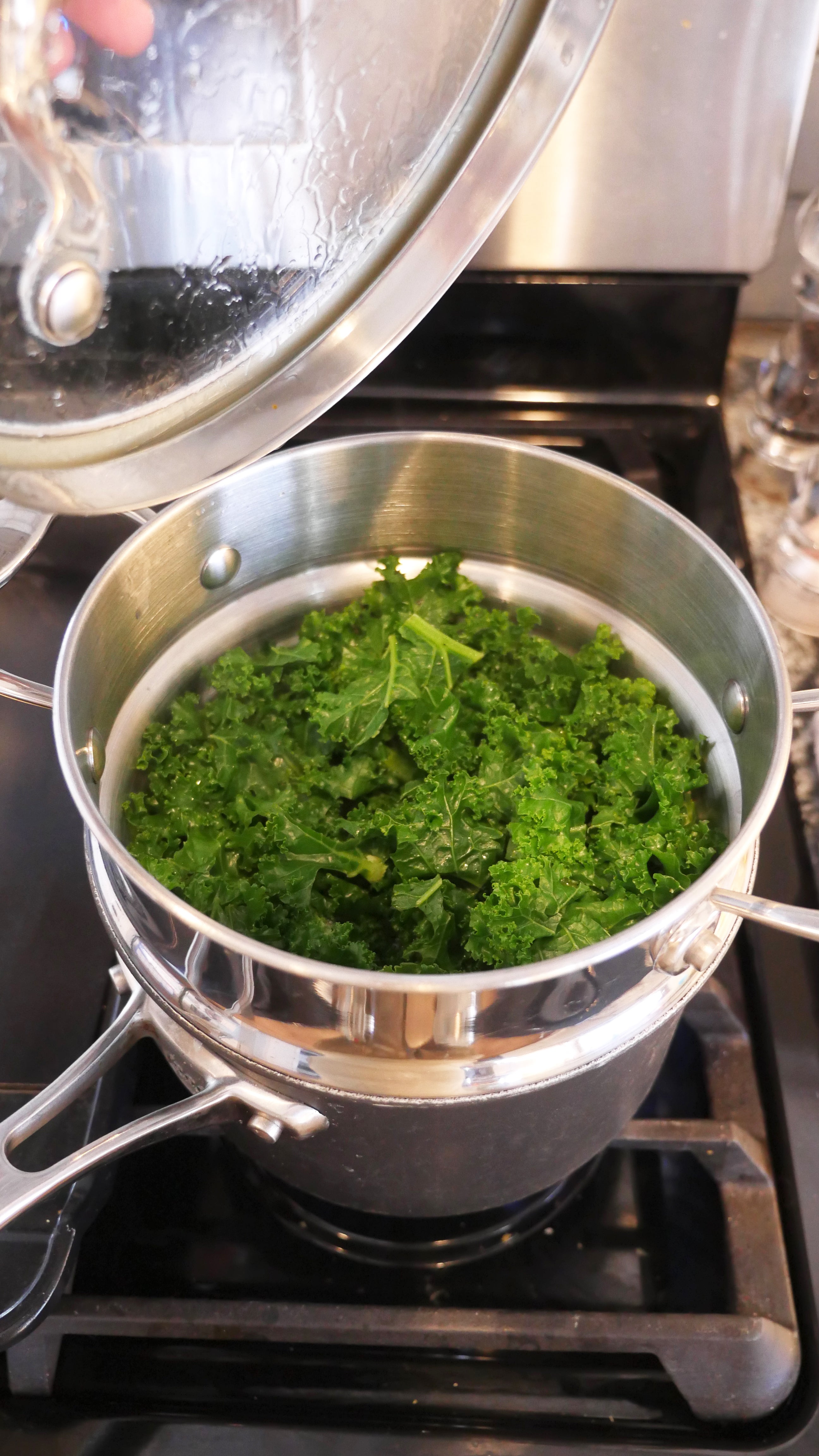 - TEAR the kale leaves into bite-sized pieces and boil or steam for 3-5 minutes until tender. Refresh by running under cold water, drain and squeeze out the excess liquid.