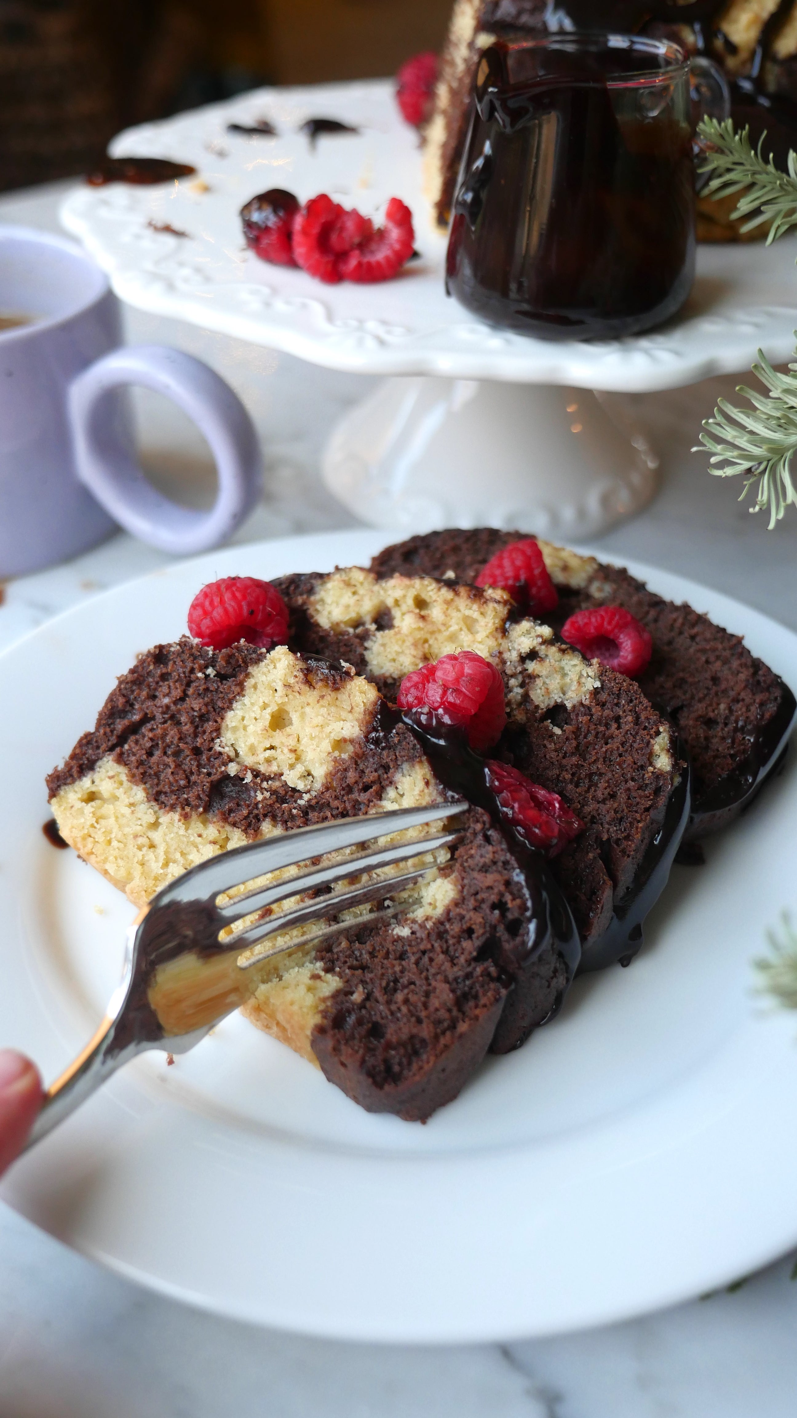 Combining two scrumptious flavors for the first time, this marble cake is a mix of rich Choc-o-lotta and Vava Vanilla. Each bite is a delicious surprise two distinct flavors, elegantly turning into one.