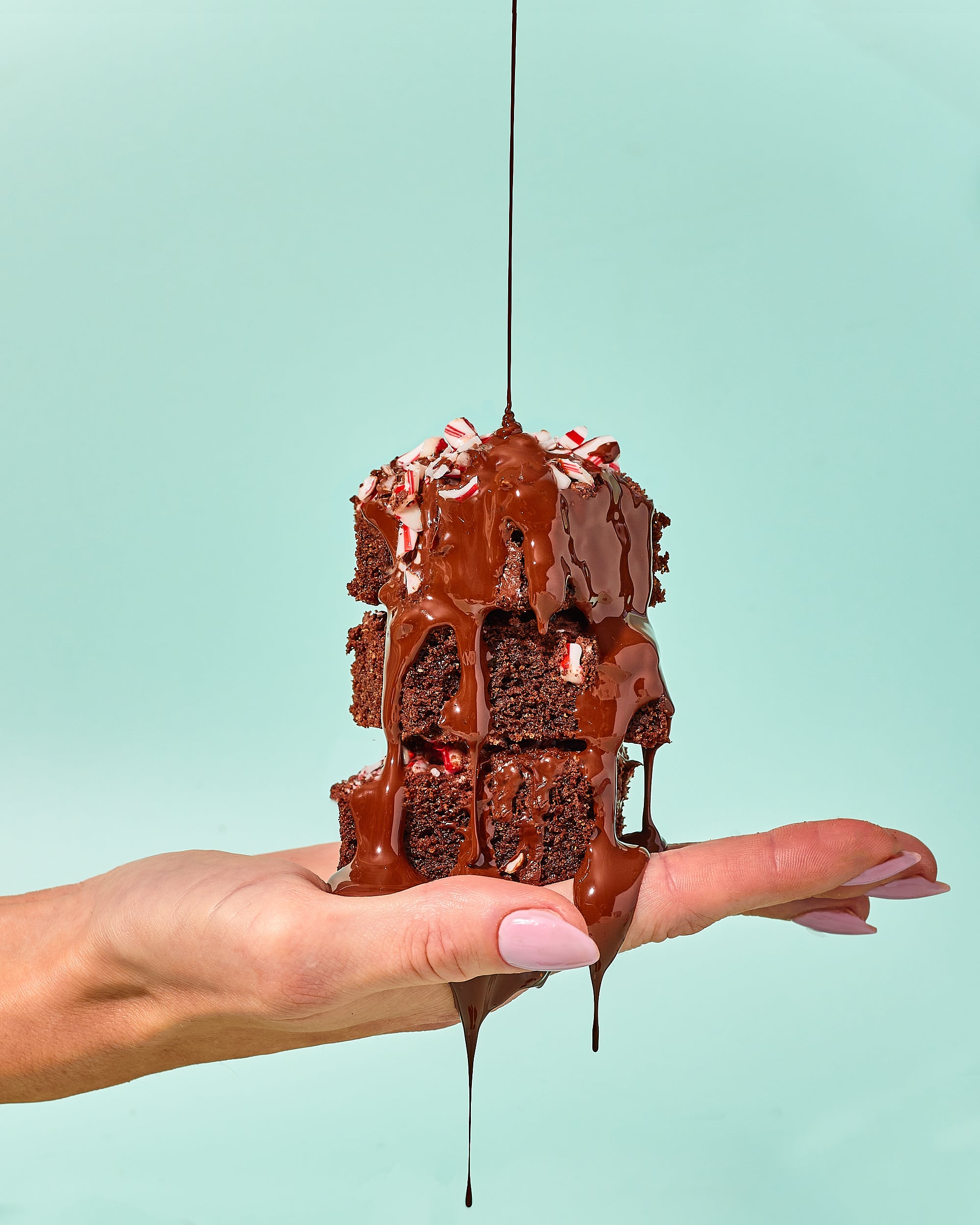 These festive brownies are too good to share. Generously topped with melted chocolate drizzle and a tantalizing crunch of peppermint chips, every bite will fill you with holiday joy.
