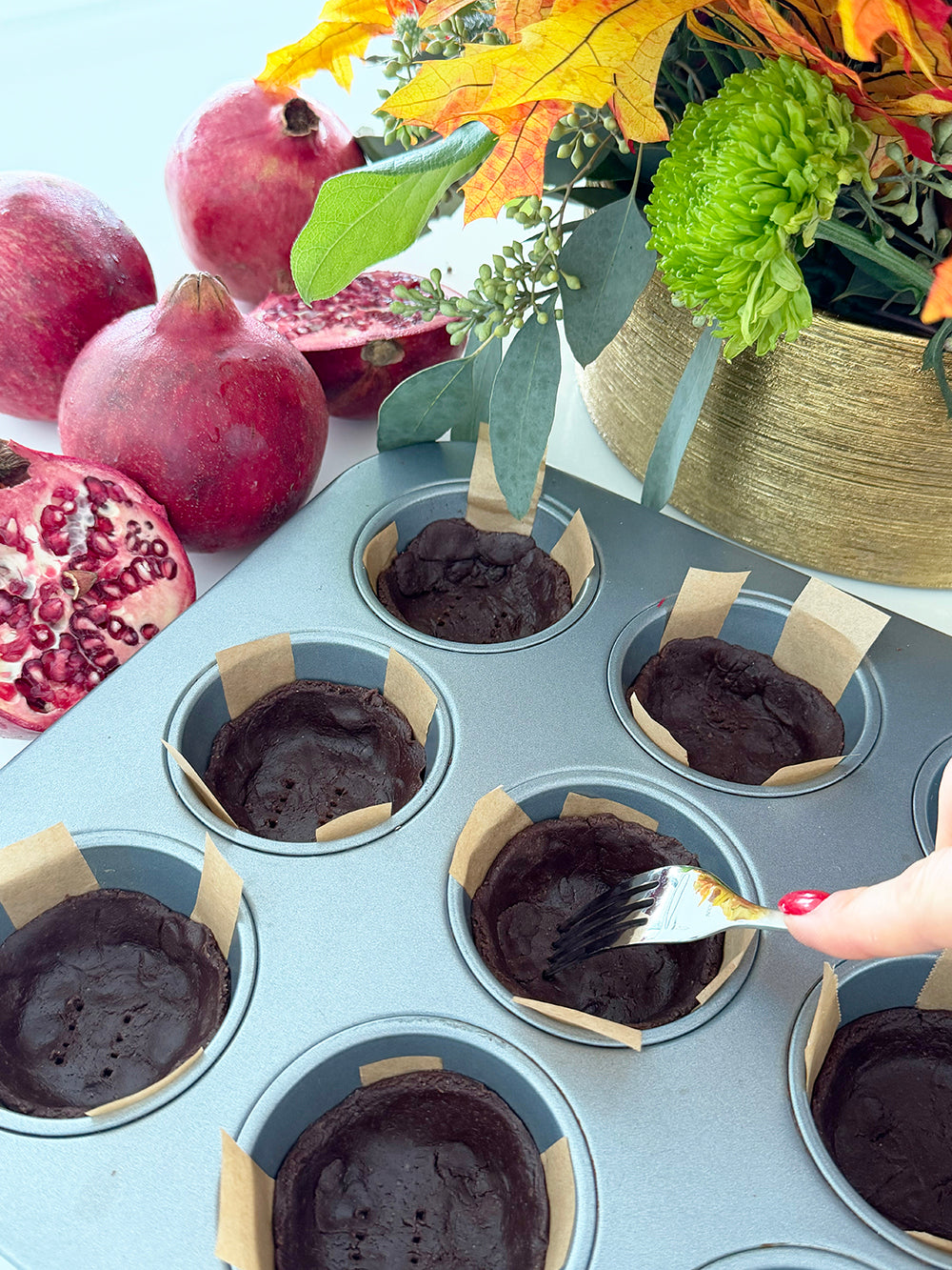 - PRESS the dough into mini tart pans or a 6–8 cup muffin tin, forming even crusts.