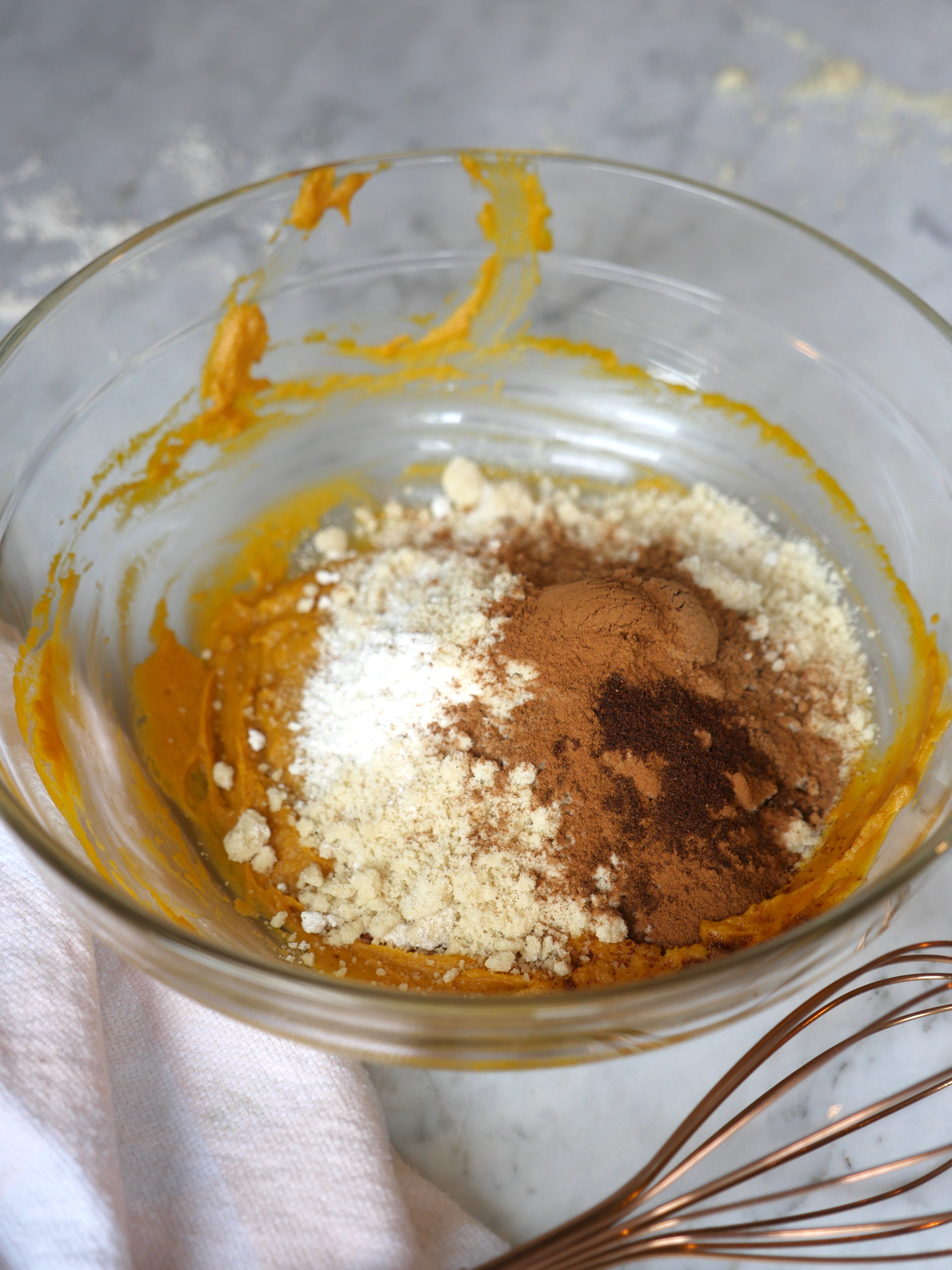 - WHISK together the almond butter and pumpkin puree in a mixing bowl.