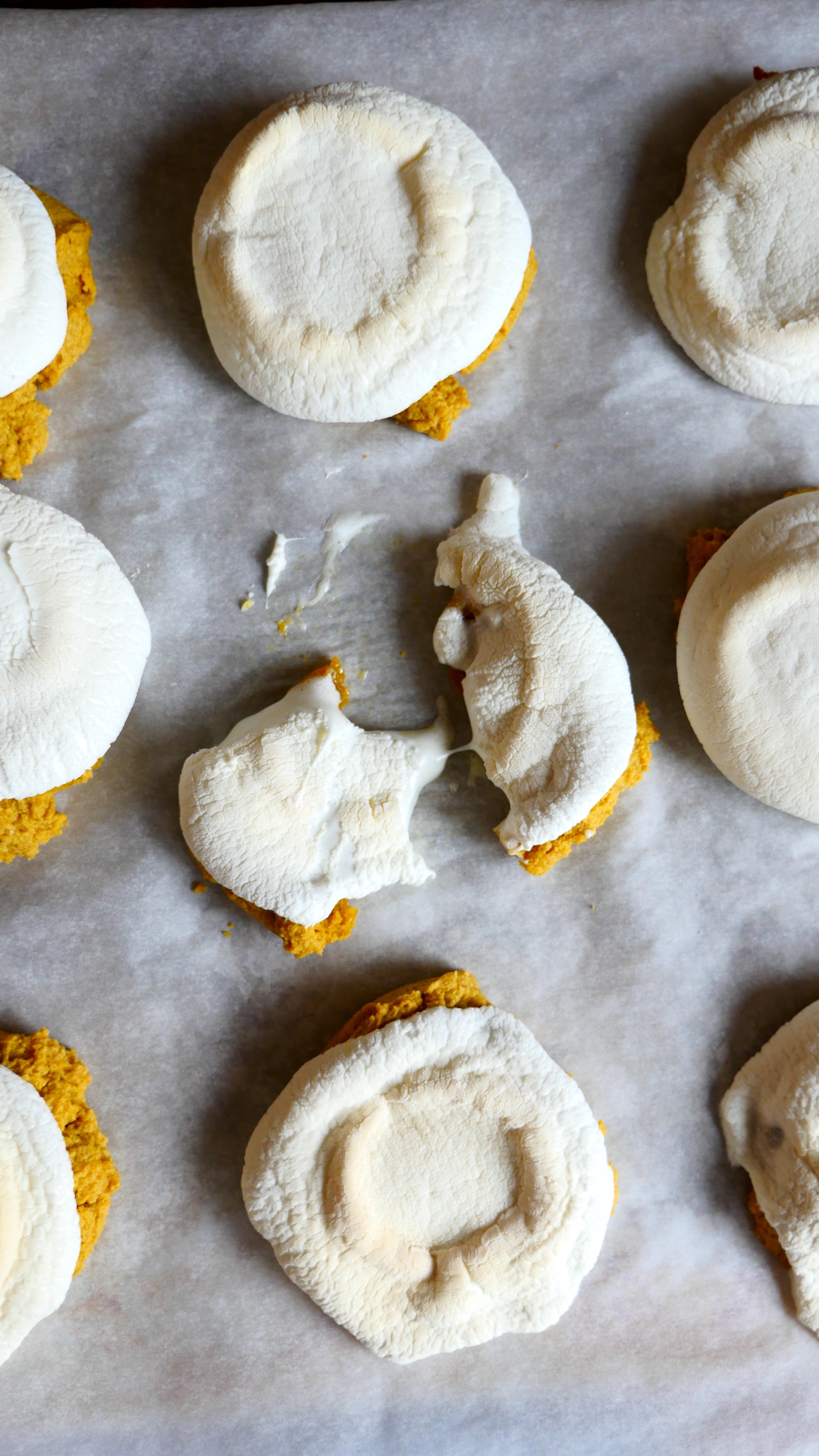 - RETURN the cookies to the oven and bake until the marshmallows have melted over the surface and toasted slightly, 9 to 12 minutes more. You may need to flatten the marshmallows with your spatula.