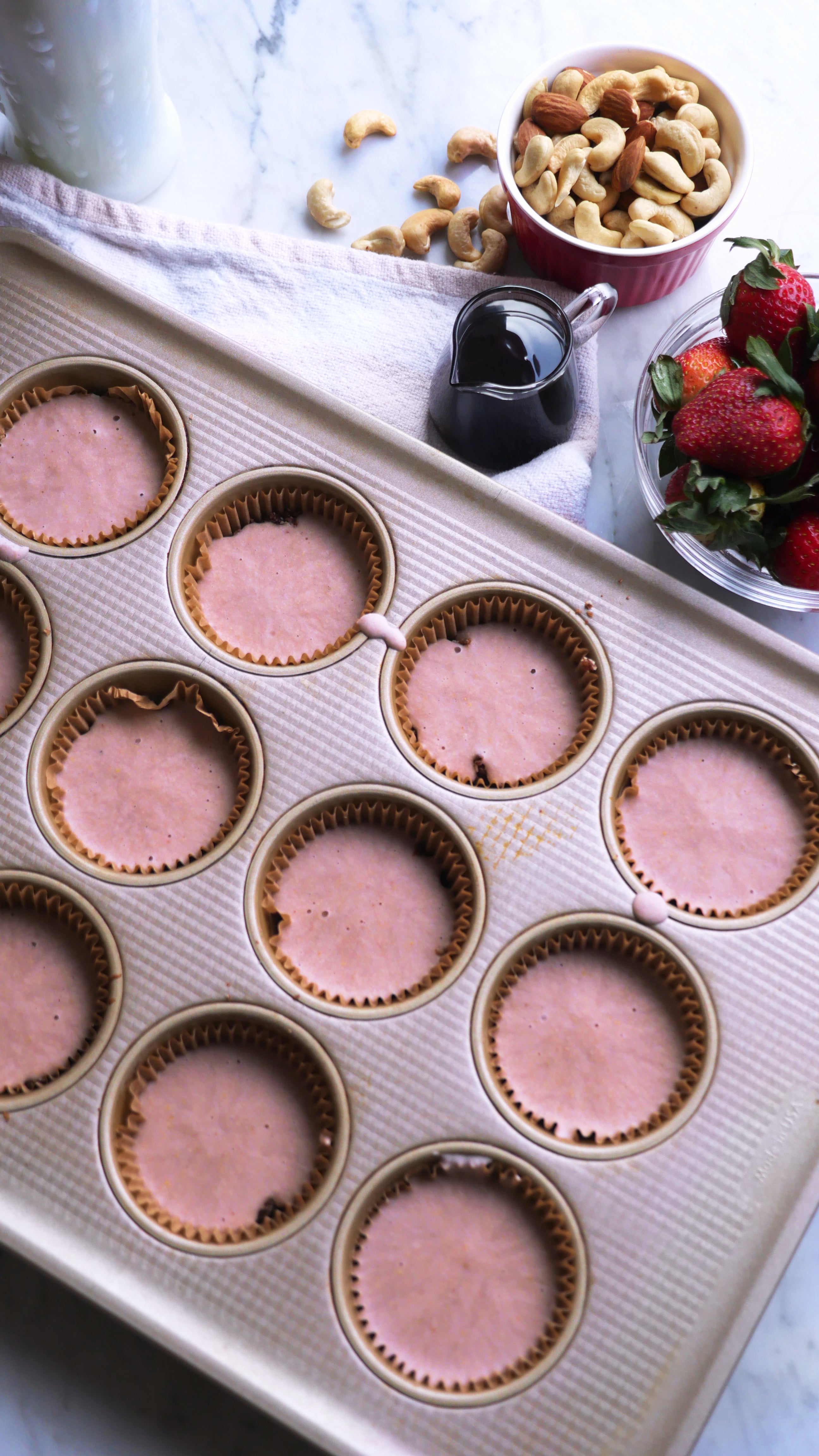 - PRESS about 1 tbsp. of the crust mixture into the base of lined muffin tin. Place in the freezer to set.
