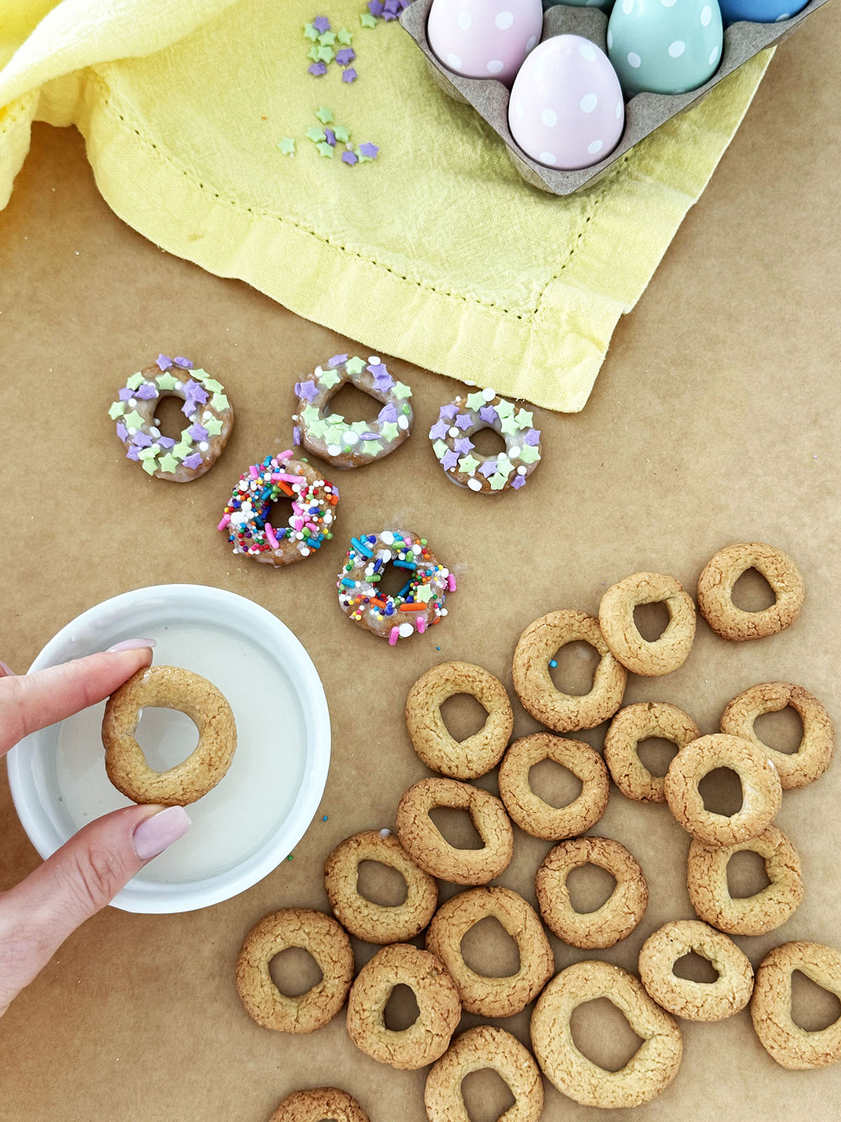 Taralli Dolci are traditional Italian Easter cookies—lightly sweet, with a soft texture and a delicate glaze. Instead of traditional wheat flour and sugar, we’re using Dilettoso’s oat flour blend, which includes oat flour, erythritol, brown rice flour, tapioca starch, and vanilla, to create a light yet satisfying texture without the gluten and refined sugar.