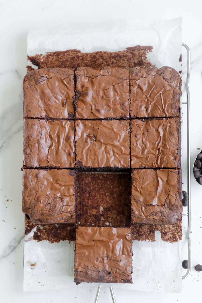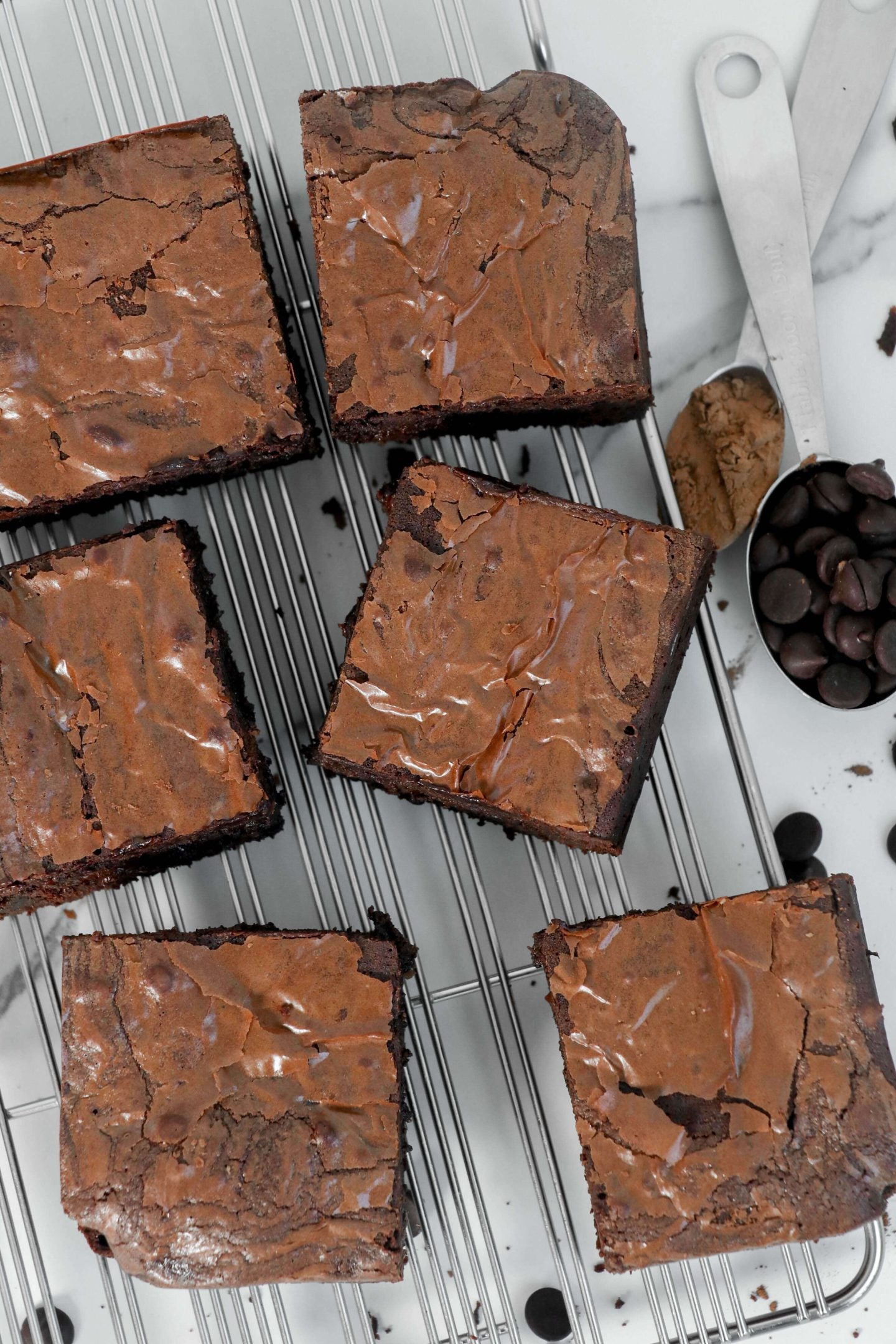 - ALLOW your gluten-free vegan brownies to cool off completely, before dusting some cacao powder.