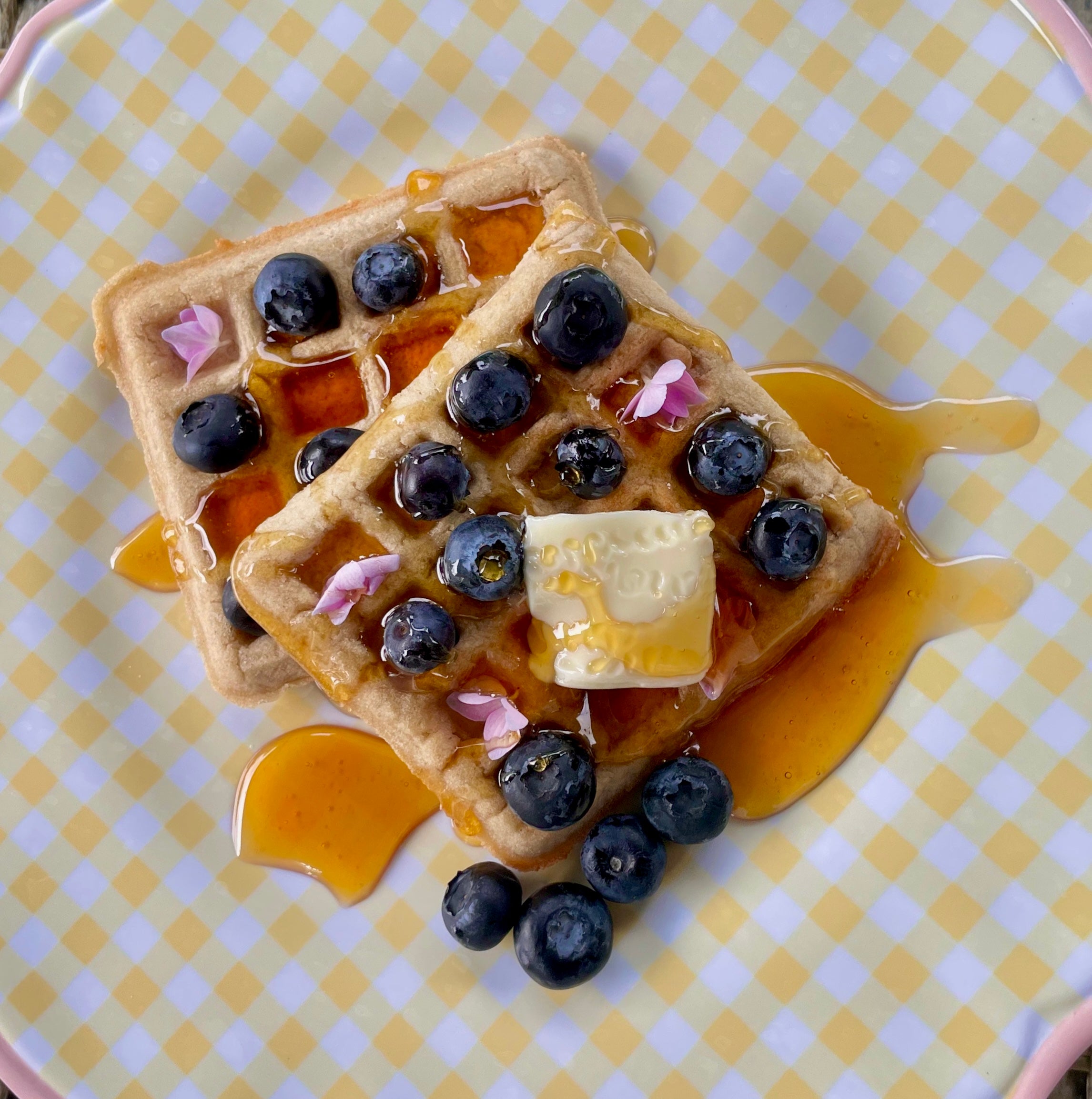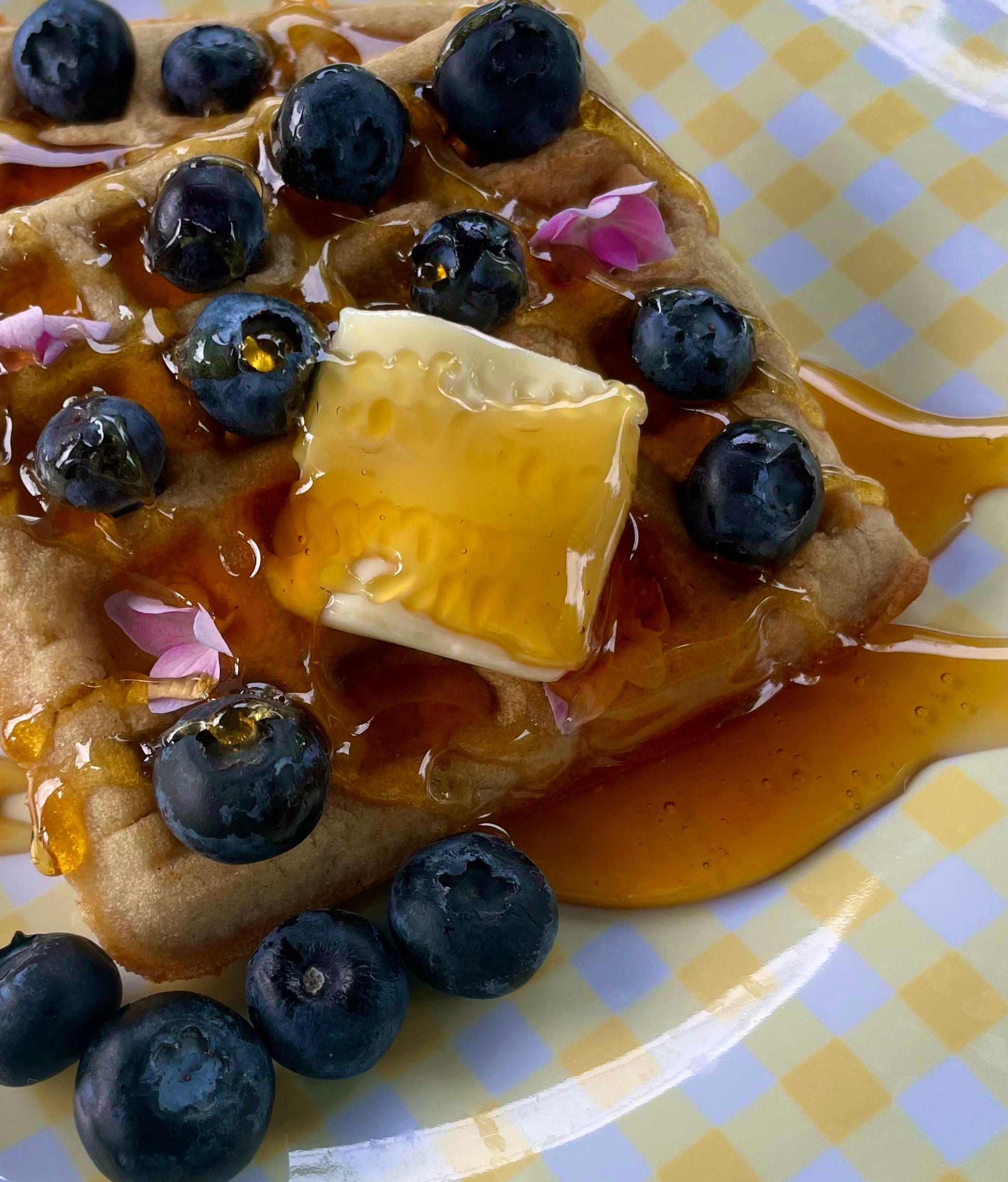 Prepare to be enchanted by the delectable combination of crispy waffles smothered with succulent blueberries and further adorned with edible flowers that impart an incredible pop of color. You'll be spellbound by the aroma of freshly baked waffles and tantalized by the fruity sweetness of this dish, making your taste buds crave for more.